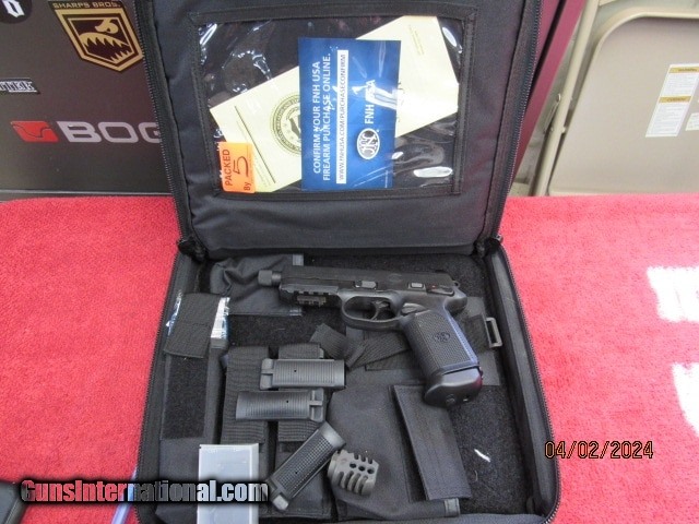 Description: Guns Listing ID: 1232704 PRE OWNED ONCE FIRED EXCELLENT CONDITION INCLUDES CASE 3 15ROUND MAGS BACKSTRAPS AND OPTIC PLATES LONE WOLF COMPENSATOR INCLUDED N America, FNX-45 Tactical, DA/SA, Semi-automatic, Full Size Pistol, 45 ACP, 5.3\" Threaded Barrel, Polymer Frame, Matte Black Finish, Suppressor Height Night Sights, 15Rd, 3 Magazines, Fired Case, Manual Safety, Optics Ready Cold Hammer-Forged Barrel Slide Cut and Threaded for Optional Electronic Red-Dot Sight Raised 3-Dot Night Sights Threaded Barrel Improving on the FNP-45 Tactical, developed for the U.S. Joint Combat Pistol Program, the FNX-45 Tactical was born and bred for battle. Like its legendary FN forefathers, this combat handgun was designed to not only survive the battlefield, but to emerge victorious. It is the latest in technological advancements in handgun engineering, offering .45 ACP performance and a host of unique features that no other handgun can match. SOLD Manufacturer: FN Model: FN America, FNX-45 Tactical, DA/SA, Semi-automatic, Full Size Pistol, 45 ACP, 5.3" Threaded Ba Caliber Info: .45 ACP Condition: Used - Non-Certified Barrels: 5.3 BARREL Finish: BLK |