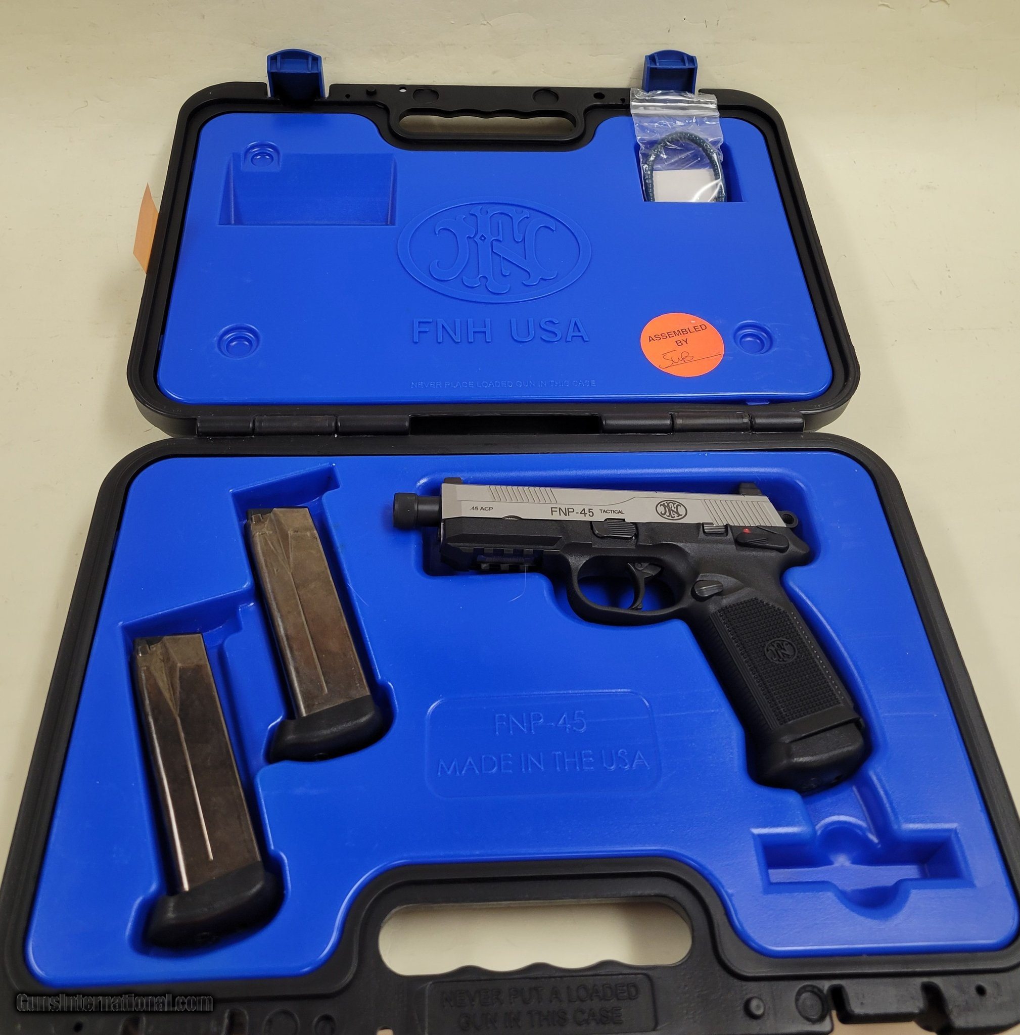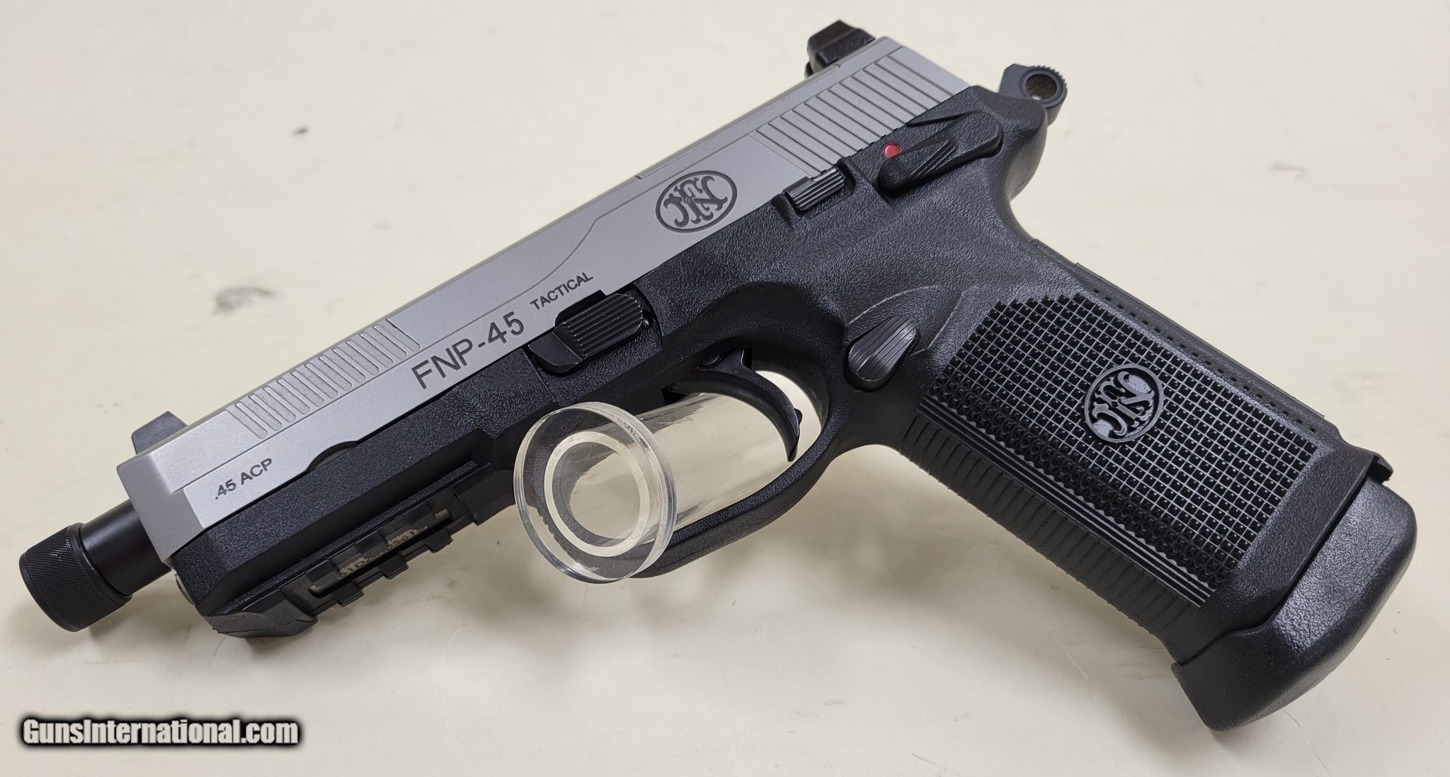 Description: Guns Listing ID: 544195 Cool FNP-45 Tactical pistol in 2 tone stainless/black finish. Threaded, optics ready, with box and 4 mags. Gun shows only light signs of firing and use. SOLD Manufacturer: FN Model: FNP-45 Caliber Info: .45 ACP Condition: Used - Non-Certified Barrels: 5.3 BARREL Action: SEMI AUTOMATIC Finish: black and stainless |