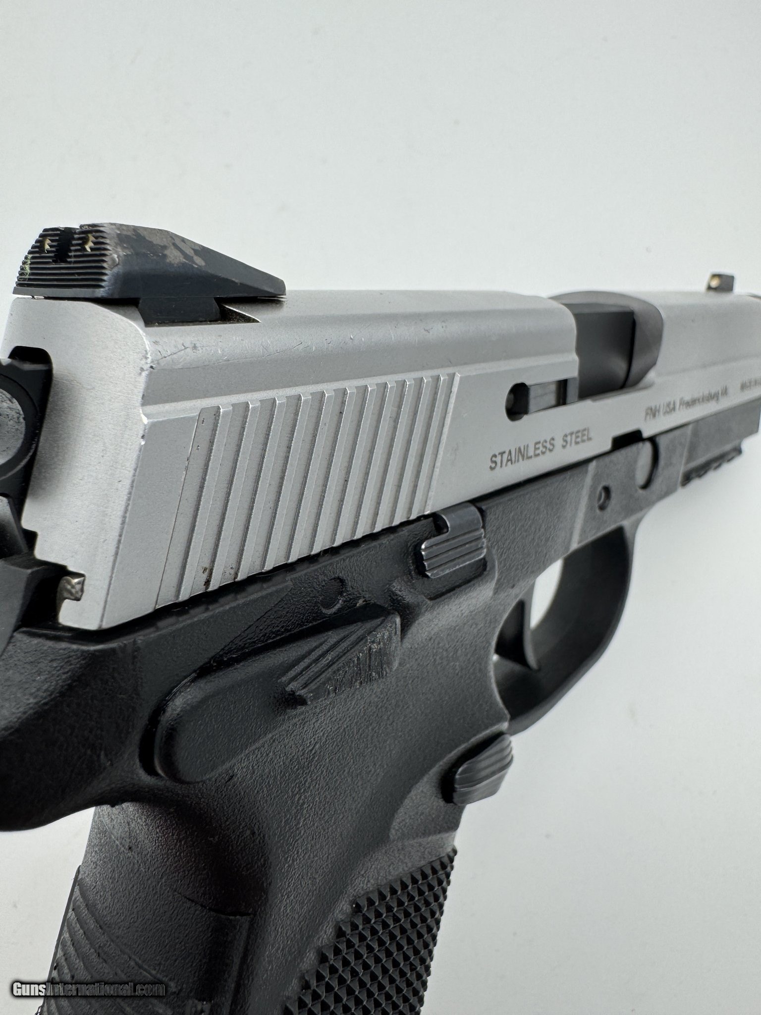Description: Guns Listing ID: 613191 This is a preowned FN FNP-45 in good condition and comes as pictured. Shows scuffs on safety and sights from holster ware. grip has a dent on corner FN FNP-45 in .45 ACP from the era when FN overbuilt everything. DA/SA hammer-fired with full ambidextrous controls and excellent ergonomics. Big, soft-shooting, and extremely reliable with any ammo. Discontinued classic that FN fans actively look for. 1025364-UEM-SG Manufacturer: FN Model: FNP-45 Caliber Info: .45 ACP Condition: Used - Non-Certified Barrels: 4.5" BARREL Action: SEMI AUTOMATIC Finish: black & stainless Price: $599.99 Contact Seller |