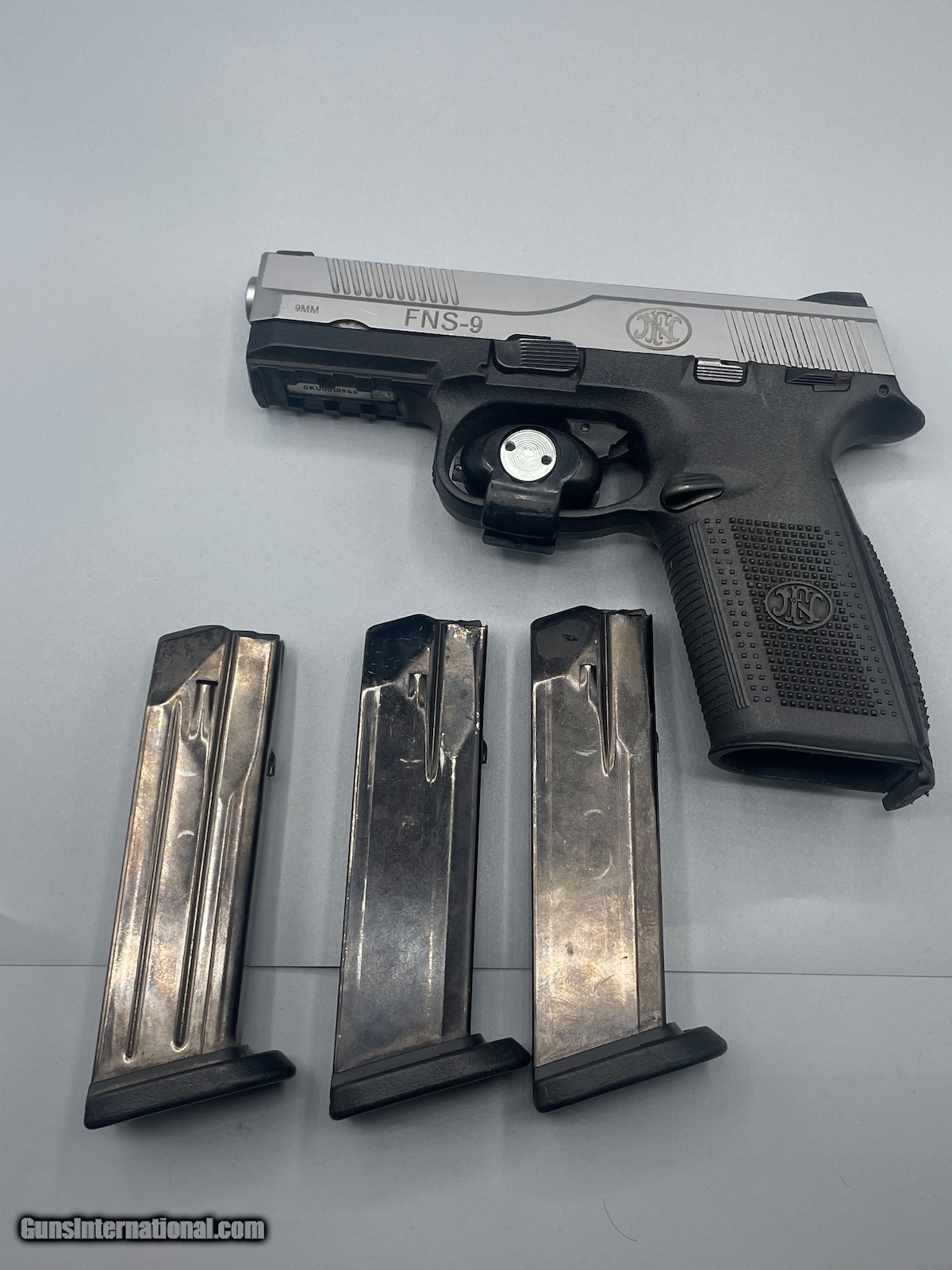 Description: Guns Listing ID: 707976 With 3 mags SOLD Manufacturer: FN Model: fns 9 Caliber Info: 9 MM Condition: Used - Non-Certified Barrels: 5 BARREL Finish: BLACK AND SILVER |