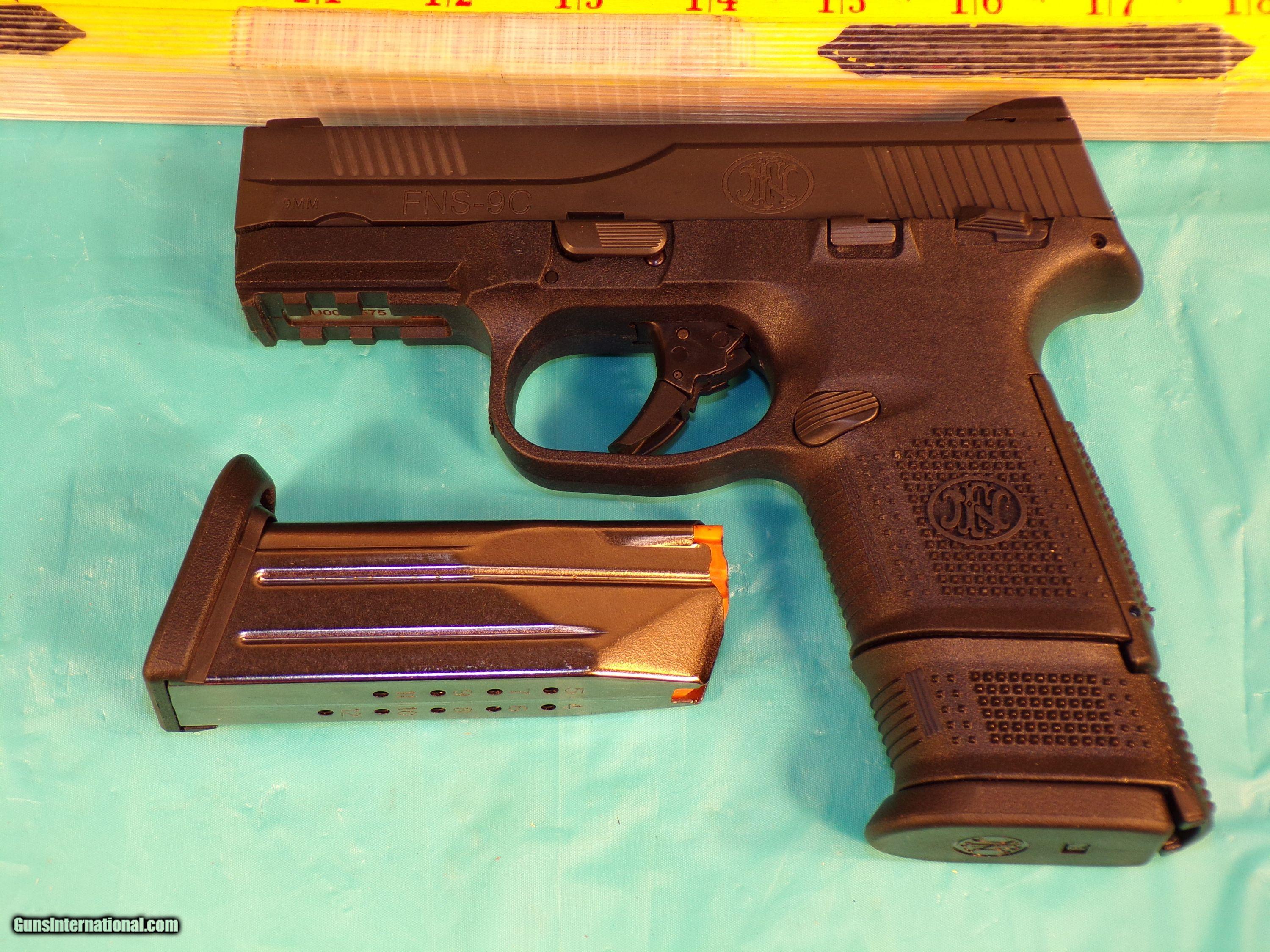 Description: A FN semi-auto 9 mm pistol with box and all papers, lock, etc. Two magazines. One 17 round with extended grip and one 12 round with flush grip. Ambidextrous controls. Assesory rail on frame. Can be used as double action for first shot or single action only. Shows minimum signs of use. 95+% condition. FFL required $20.00 shipping and insurance via Priority Mail SOLD |