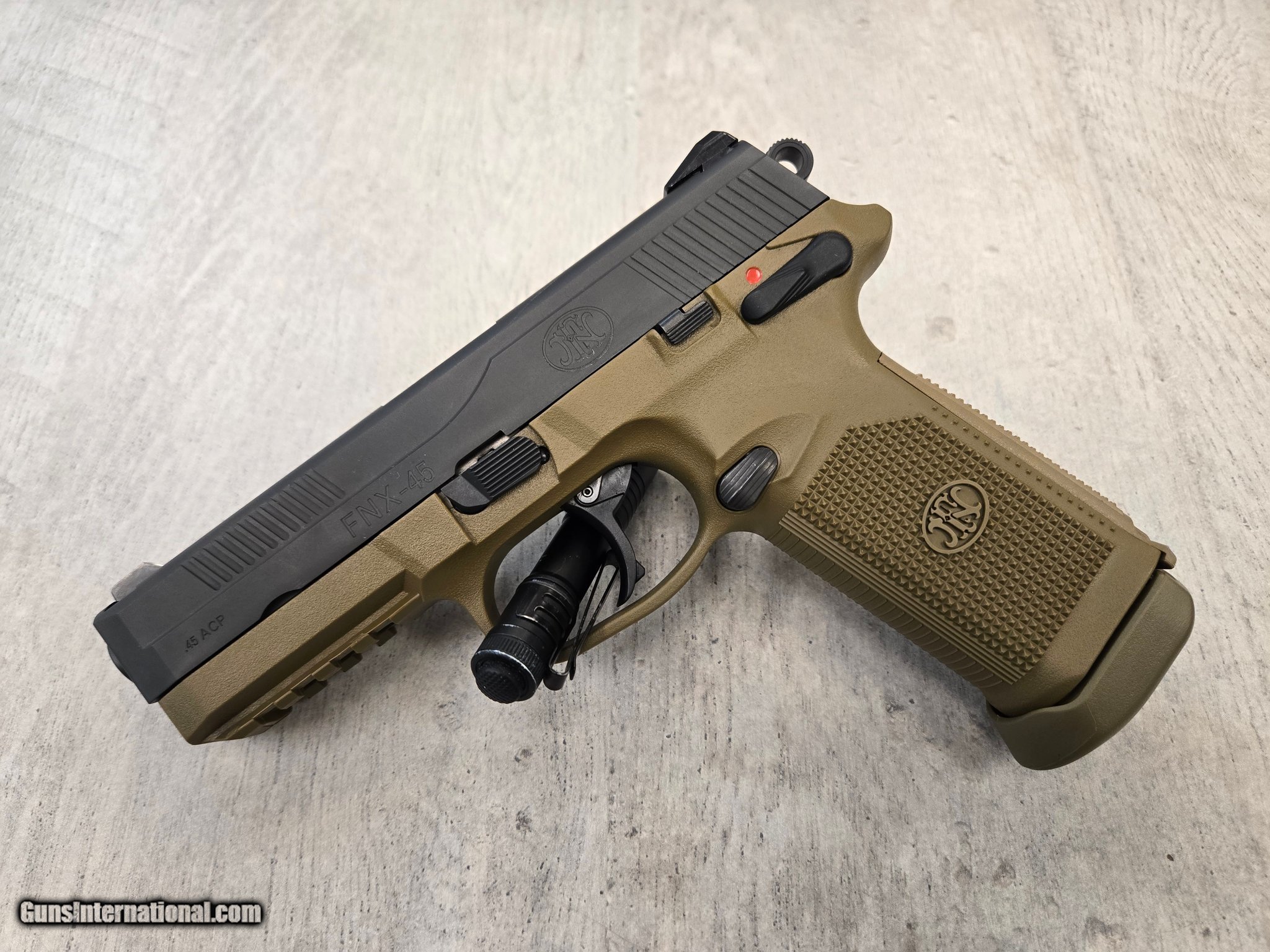 Description: Guns Listing ID: 466649 Normal wear and tear, comes with one magazine, no box. SOLD Manufacturer: FN Model: FNX-45 Condition: Used - Non-Certified Barrels: 4.6 Gauge Info: .45 ACP Finish: black/fde |