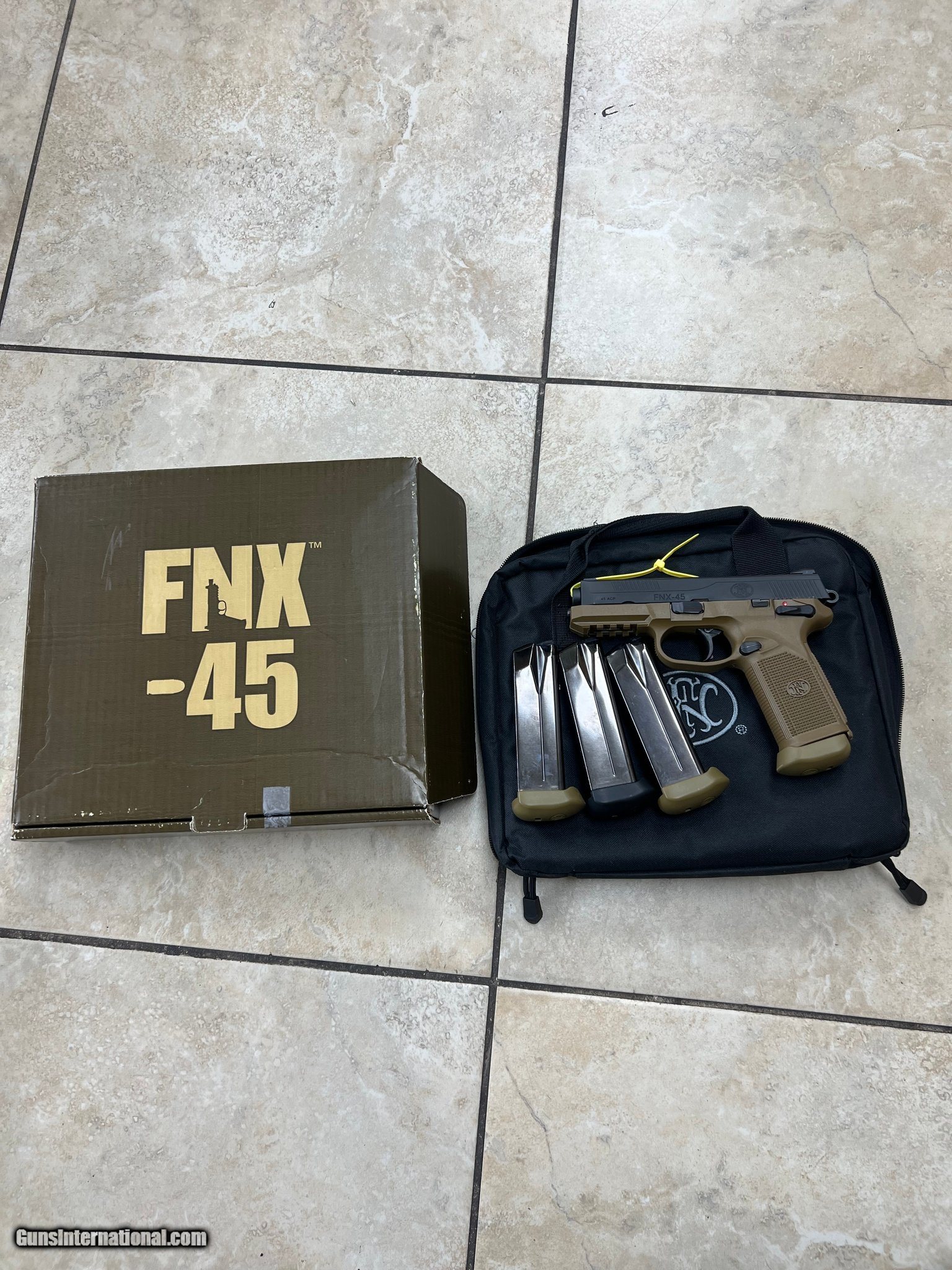 Description: Guns Listing ID: 484596 Cokes with 4 mags original box SOLD Manufacturer: FN Model: FNX-45 Caliber Info: .45 ACP Condition: Used - Non-Certified Barrels: 4.5 BARREL Finish: black/fde |