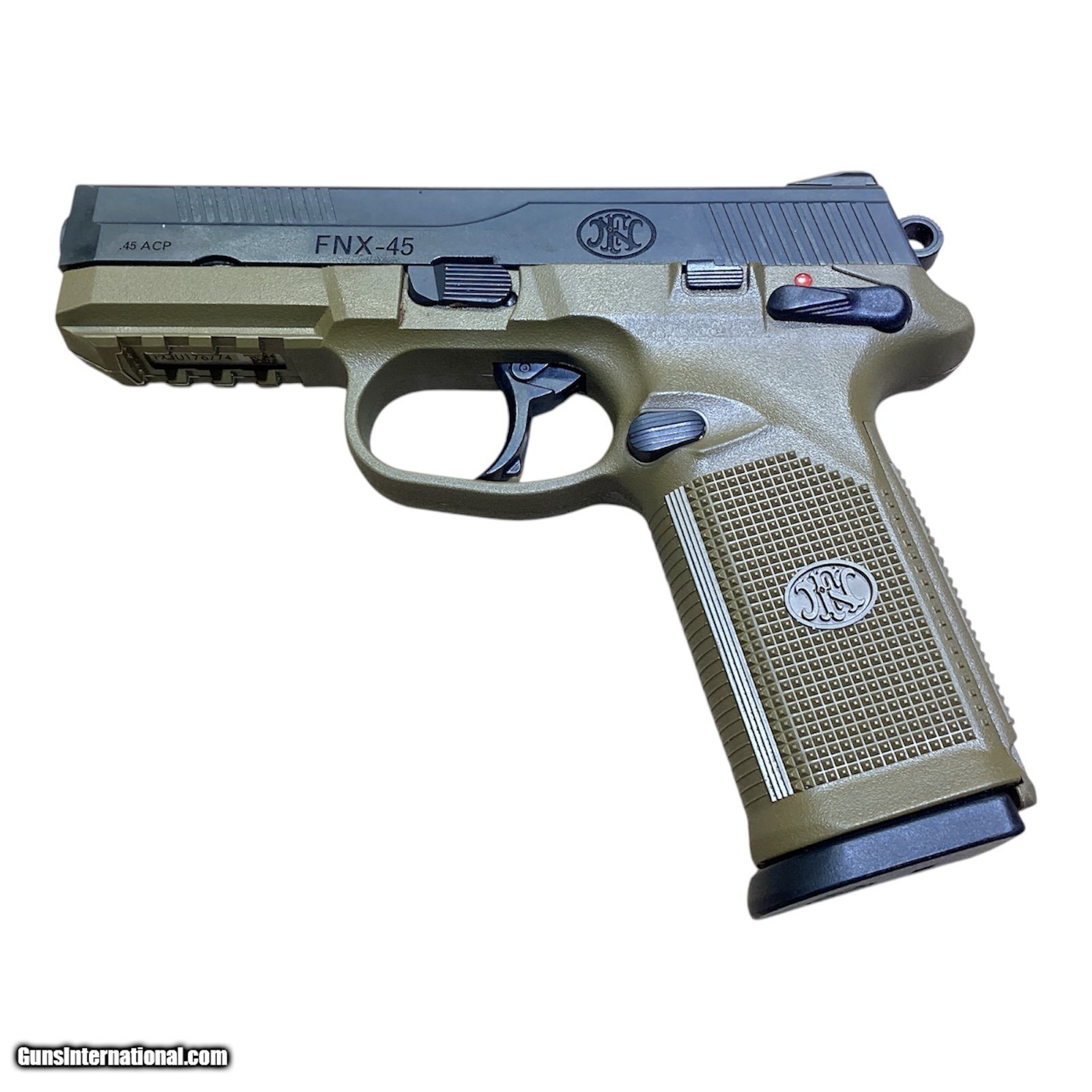 Description: Guns Listing ID: 512127 No box is included. Firearm was well kept with no visible scratches on gun finish. See images for more details. SOLD Manufacturer: FN Model: FNX-45 Caliber Info: .45 ACP Condition: Used - Non-Certified Barrels: 4.5 Action: SEMI AUTOMATIC Finish: two tone |