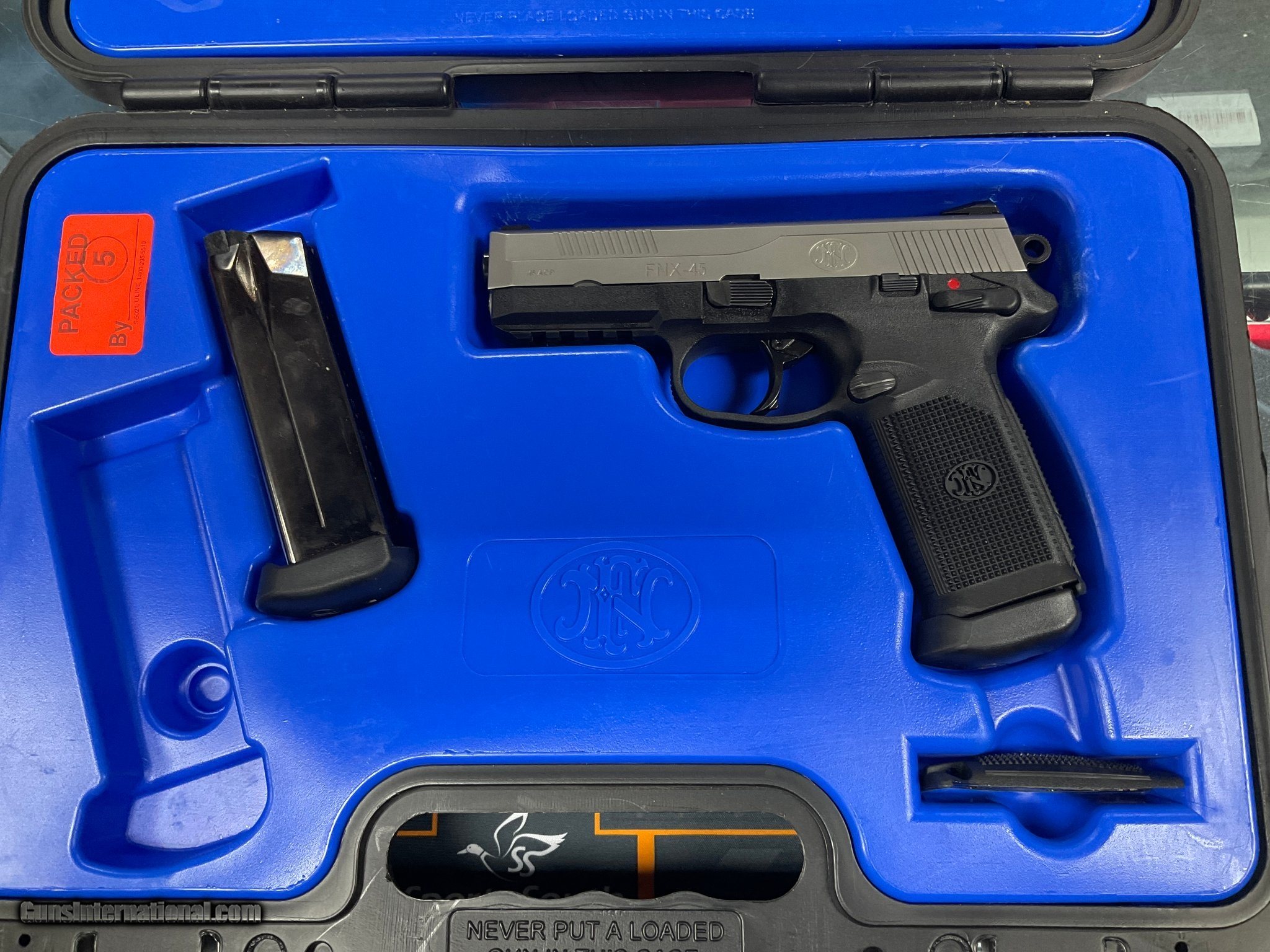 Description: Guns Listing ID: 474340 Firearm was used lightly. Comes with two mags and original box. SOLD Manufacturer: FN Model: FNX-45 Caliber Info: .45 ACP Condition: Used - Non-Certified Barrels: 4.5 BARREL Action: SINGLE/DOUBLE ACTION Finish: TWO-TONE Weight: 2.1 LBS. |