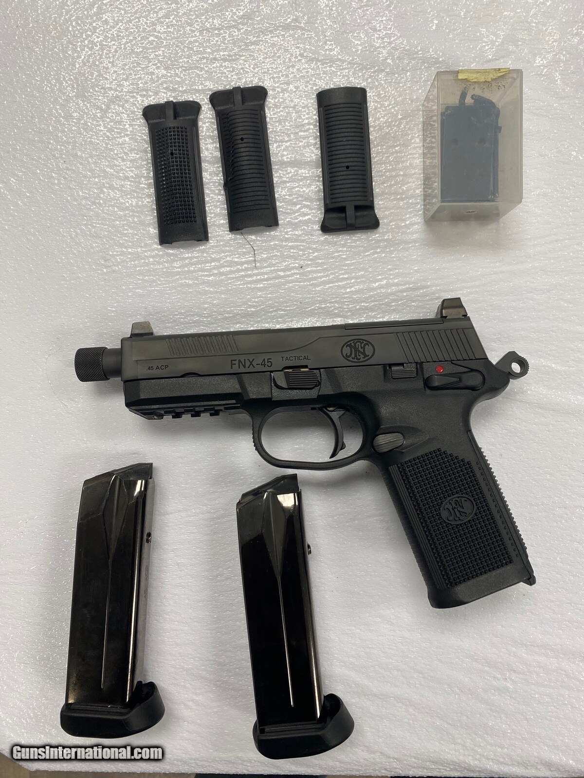 Description: Guns Listing ID: 906583 Comes with two 15 round mags, modular optic plates, grip backstraps, barrel thread cover and FN case. SOLD Manufacturer: FN Model: FNX-45 TACTICAL Caliber Info: .45 ACP Condition: Used - Non-Certified Barrels: 5.3 BARREL |
