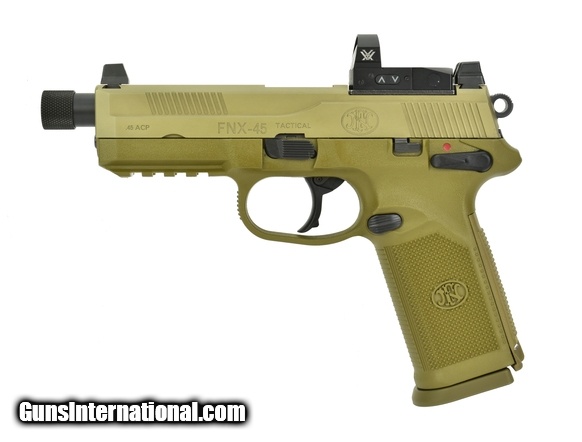 Description: FN FNX-45 Tactical .45 ACP caliber pistol. Tactical model with Vortex Venom red dot with box and magazine in FDE finish. Excellent condition.
