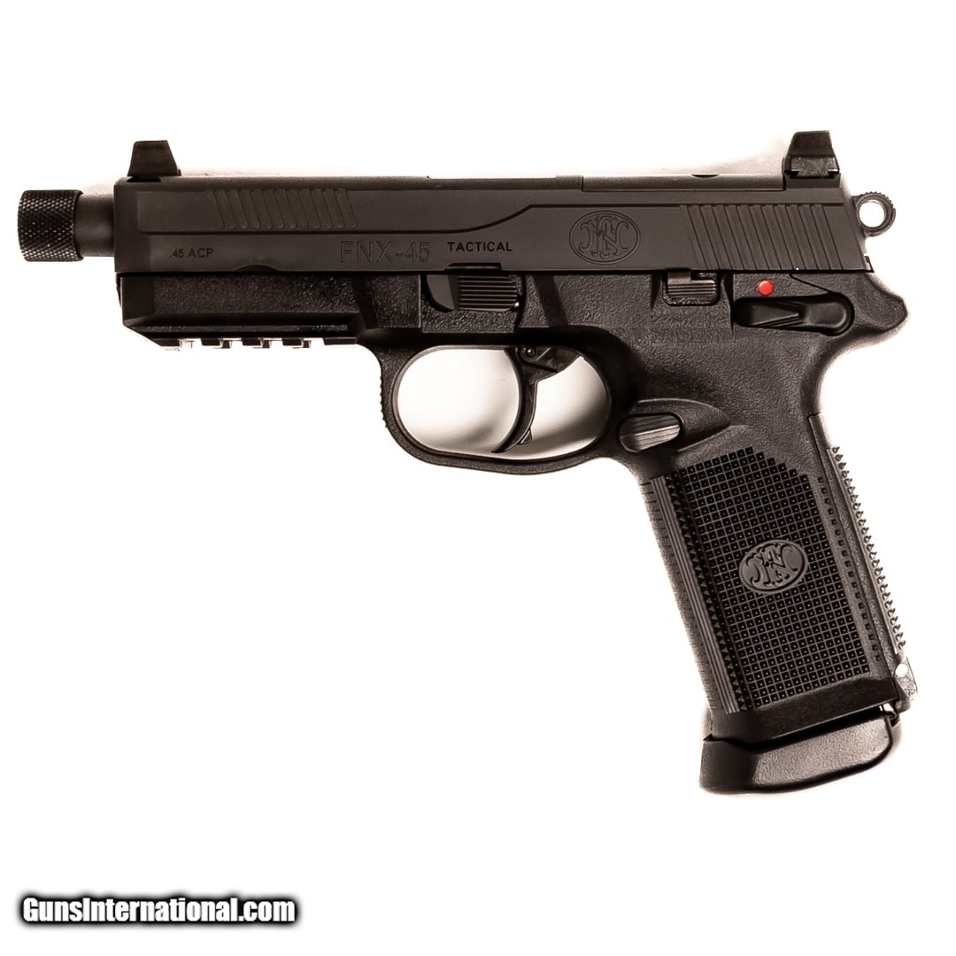 Description: Guns Listing ID: 818480 For sale is an FN FNX-45 Tactical, a semi-automatic handgun chambered in 45 ACP. It was designed for combat operations and will work well for self-defense, home defense, and duty use. This FNX-45 Tactical is equipped with night sights. Purchase includes the original soft case, manual, four 15-round magazines, and backstraps. Get the best bang for your buck when you get a Certified Used Firearm . When you see the Certified Used stamp on any of our firearms, you can be confident that you’re getting exactly what you want – a gun only in very good to excellent condition and held to the highest quality standard. All Certified Used Guns come with a ‘no questions asked’ return policy . PLUS, ALL CERTIFIED USED GUNS SHIP FREE! SOLD Manufacturer: FN Model: FNX-45 TACTICAL Caliber Info: .45 ACP Condition: Used - Non-Certified Barrels: 5.3 BARREL Finish: BLACK |