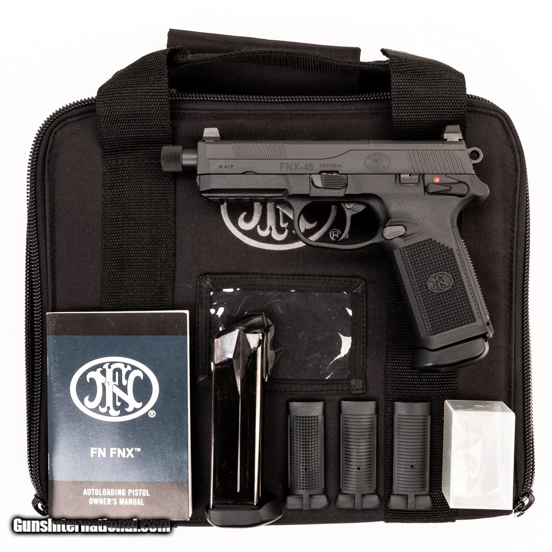 Description: Guns Listing ID: 1280247 This optic-ready model features a threaded barrel with protector and a safety decocker. Purchase includes the original box, soft case, manual, two 15-round magazines, backstraps, and optic plates. Get the best bang for your buck when you get a Certified Used Firearm . When you see the Certified Used stamp on any of our firearms, you can be confident that you‚‚re getting exactly what you want – a gun only in very good to excellent condition and held to the highest quality standard. All Certified Used Guns come with a ‚‚no questions asked‚‚ return policy . PLUS, ALL CERTIFIED USED GUNS SHIP FR SOLD Manufacturer: FN Model: FNX-45 TACTICAL Caliber Info: .45 ACP Condition: Used - Non-Certified Barrels: 5.25 BARREL Finish: BLACK |