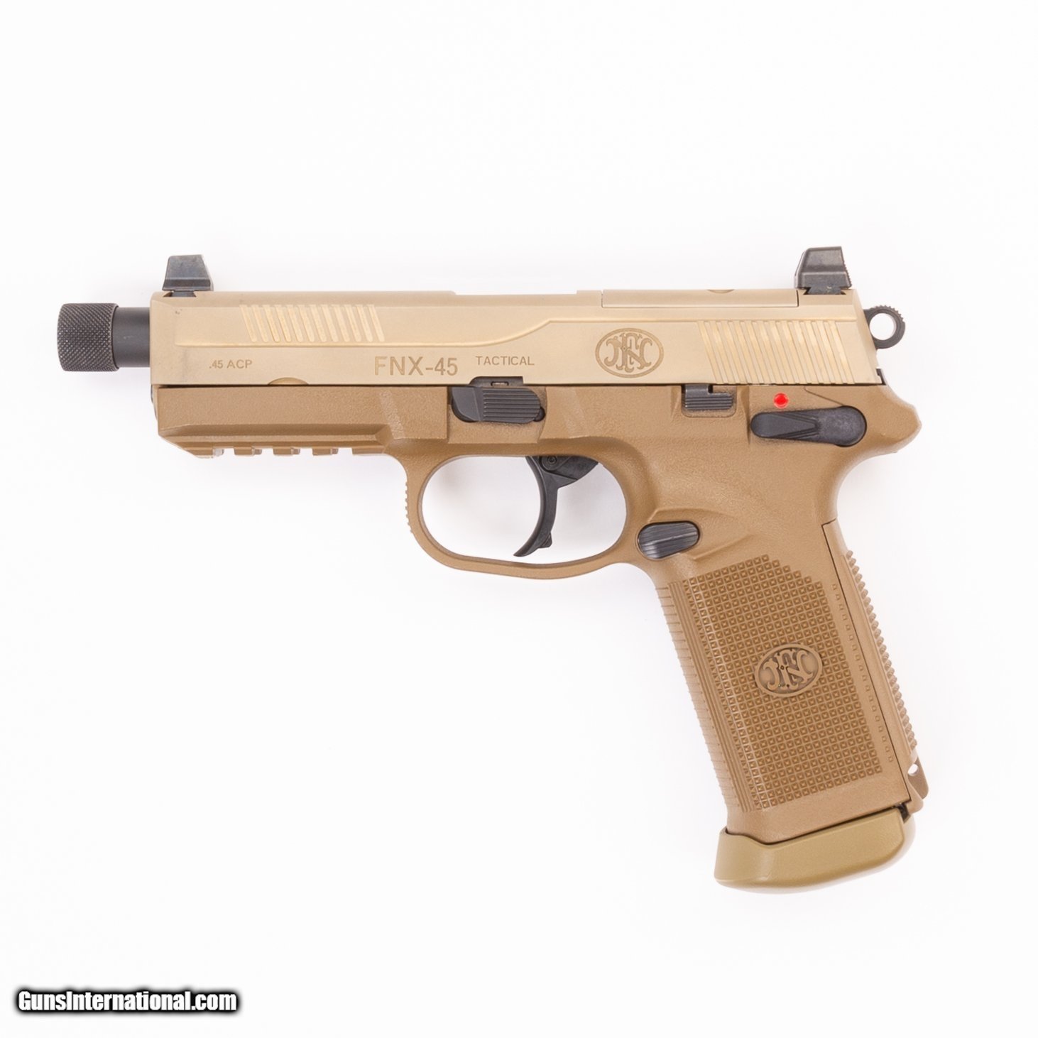 Description: Guns Listing ID: 470579 This FN FNX-45 Tactical features a threaded barrel. It includes the original case, box, and five 15-round magazines. Get the best bang for your buck when you get a Certified Used Firearm . When you see the Certified Used stamp on any of our firearms, you can be confident that you‚‚re getting exactly what you want – a gun only in very good to excellent condition and held to the highest quality standard. All Certified Used Guns come with a ‚‚no questions asked‚‚ return policy . PLUS, ALL CERTIFIED USED GUNS SHIP FR SOLD Manufacturer: FN Model: FNX-45 TACTICAL Caliber Info: .45 ACP Condition: Used - Certified Barrels: 5.30 Action: SEMI AUTOMATIC Finish: FDE Weight: 2 |