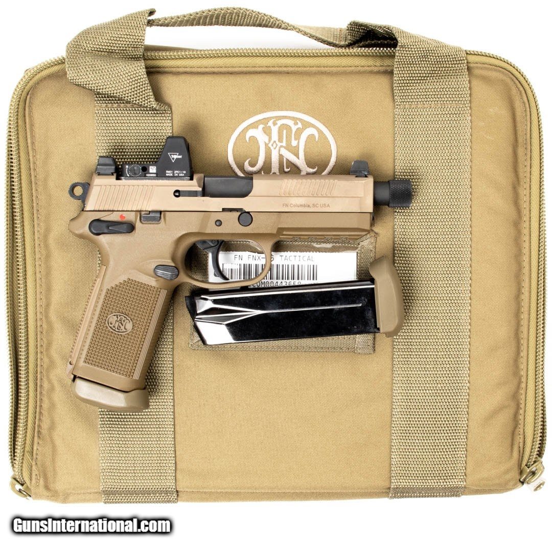 Description: Guns Listing ID: 534790 This FN FNX-45 Tactical features an optic-ready slide, threaded barrel, an ambidextrous mag release, an ambidextrous slide release, an ambidextrous safety/decocker, raised w white circle Tritium night sights, and a Trijicon RM01 (needs CR2032 battery). Purchase includes the soft case, manual, and two 15-round magazines. Get the best bang for your buck when you get a Certified Used Firearm . When you see the Certified Used stamp on any of our firearms, you can be confident that you‚‚re getting exactly what you want – a gun only in very good to excellent condition and held to the highest quality standard. All Certified Used Guns come with a ‚‚no questions asked‚‚ return policy . PLUS, ALL CERTIFIED USED GUNS SHIP FR SOLD Manufacturer: FN Model: FNX-45 TACTICAL Caliber Info: .45 ACP Condition: Used - Certified Barrels: 5.30 BARREL Action: SEMI AUTOMATIC Finish: fde Weight: 1.8 |