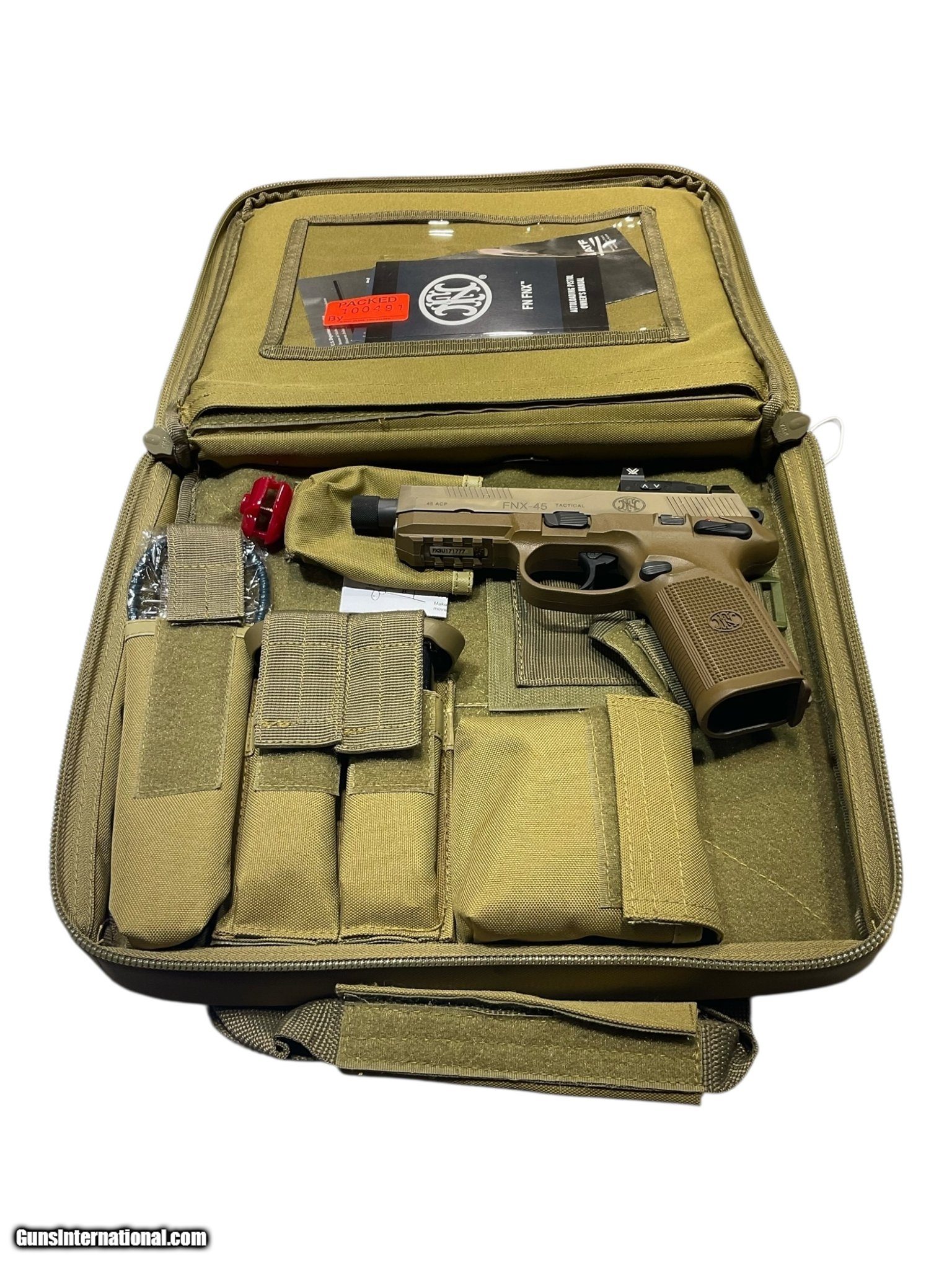 Description: Guns Listing ID: 524651 This firearm comes with (2) two magazines. Case and lock. See photos for details. With vortex venom. SOLD Manufacturer: FN Model: FNX-45 TACTICAL Caliber Info: .45 ACP Condition: Used - Non-Certified Barrels: 4 BARREL Action: SEMI AUTOMATIC Finish: flat dark earth |