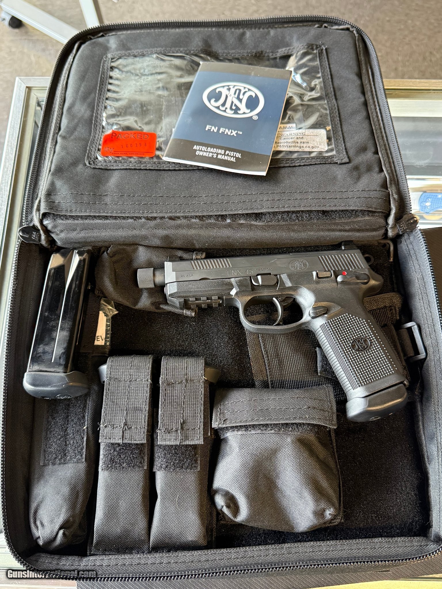 Description: Guns Listing ID: 549476 - EXCELLENT CONDITION - ORIGINAL SOFT CARRY CASE - FOUR 15-ROUND MAGAZINES SOLD Manufacturer: FN Model: FNX-45 TACTICAL Caliber Info: .45 ACP Condition: Used - Non-Certified Barrels: 5.3 BARREL Action: SEMI AUTOMATIC Finish: black |
