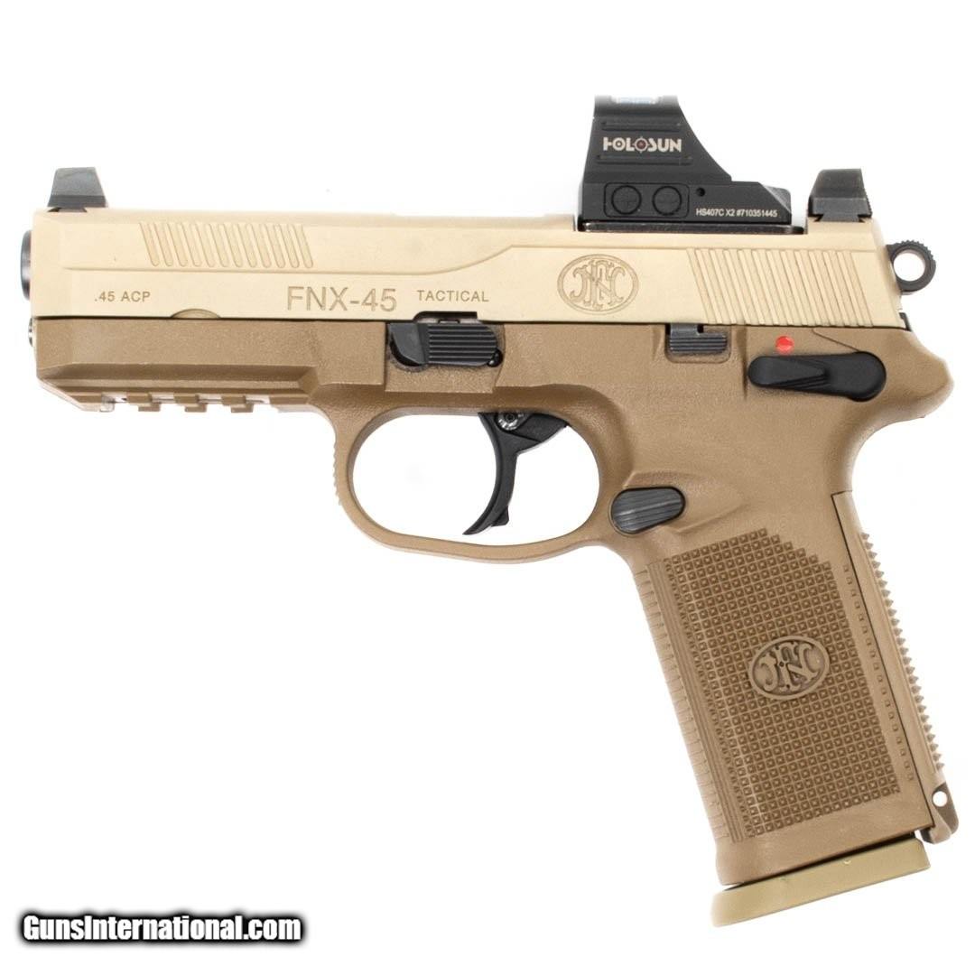 Description: Guns Listing ID: 552656 This FN FNX-45 Tactical features a Holosun HS407C X2 red dot. Purchase includes the original box, soft case, manual, five 10-round magazines, and backstraps. Get the best bang for your buck when you get a Certified Used Firearm . When you see the Certified Used stamp on any of our firearms, you can be confident that you‚re getting exactly what you want – a gun only in very good to excellent condition and held to the highest quality standard. All Certified Used Guns come with a ‚no questions asked‚ return policy . SOLD Manufacturer: FN Model: FNX-45 TACTICAL Caliber Info: .45 ACP Condition: Used - Certified Barrels: 4.50 BARREL Action: SEMI AUTOMATIC Finish: fde Weight: 1.8 |