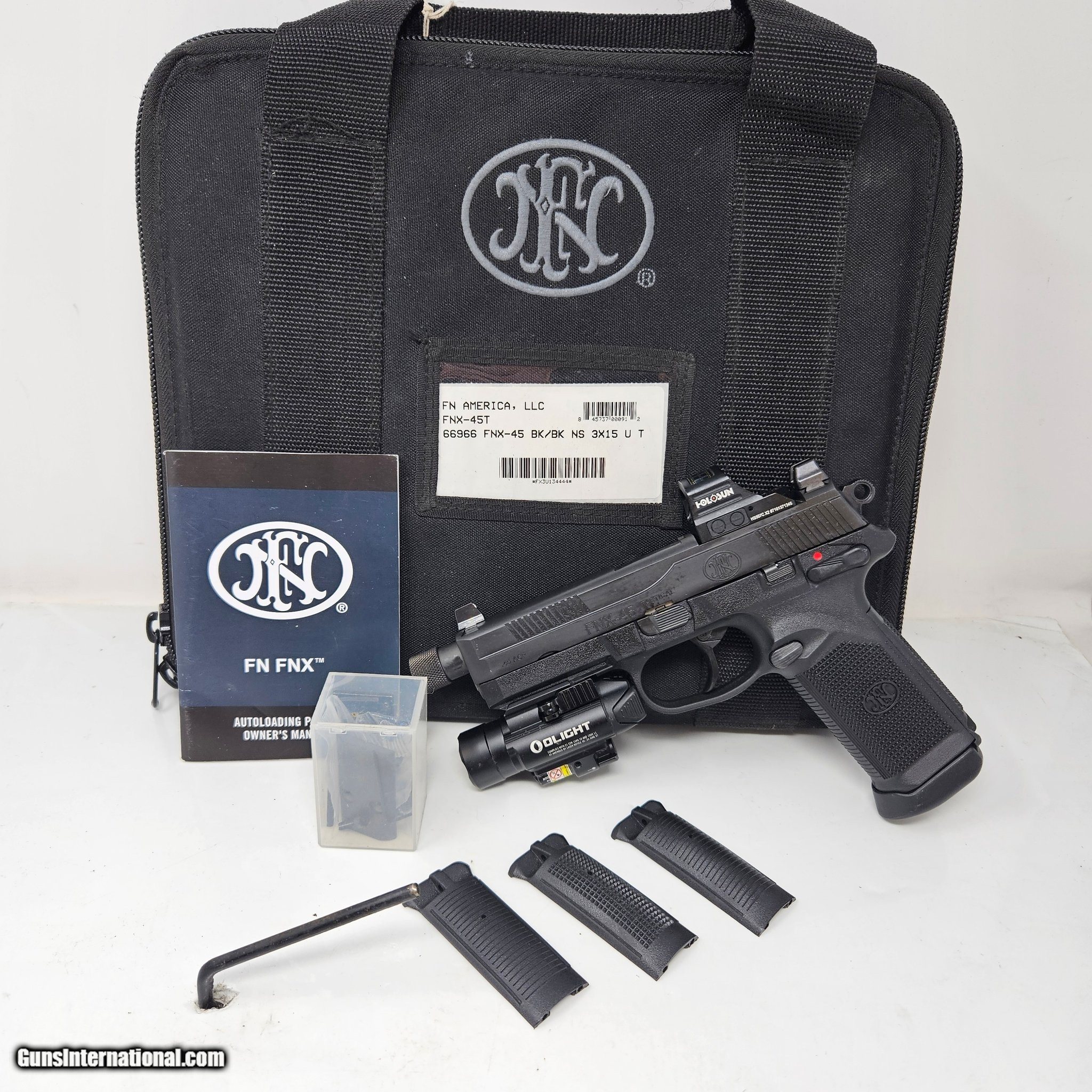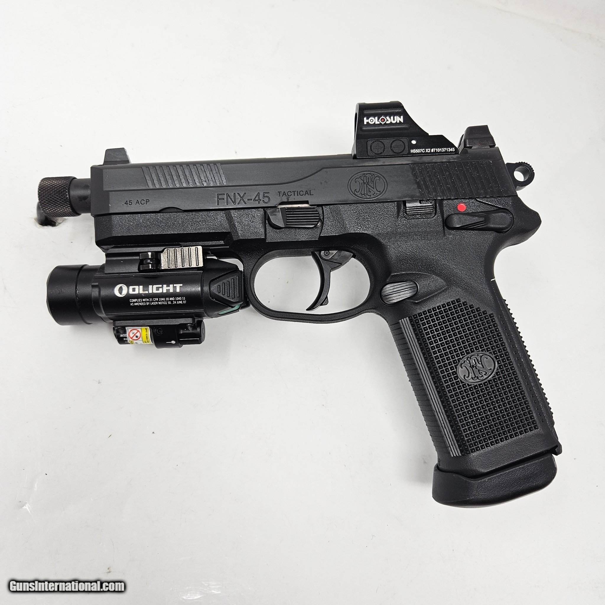 Description: Guns Listing ID: 571731 Used FN FNX-45 TACTICAL with holosun HS507C optic and olight baldr pro light laser combo. Includes case, backstraps, and cover plate. Wear from general use, lenses have scratches, finish may look spotty in the pictures, but it was recently ultrasonic cleaned and may have excess oil when shipped SOLD Manufacturer: FN Model: FNX-45 TACTICAL Caliber Info: .45 ACP Condition: Used - Non-Certified Barrels: 5" BARREL Action: SEMI AUTOMATIC Finish: black |