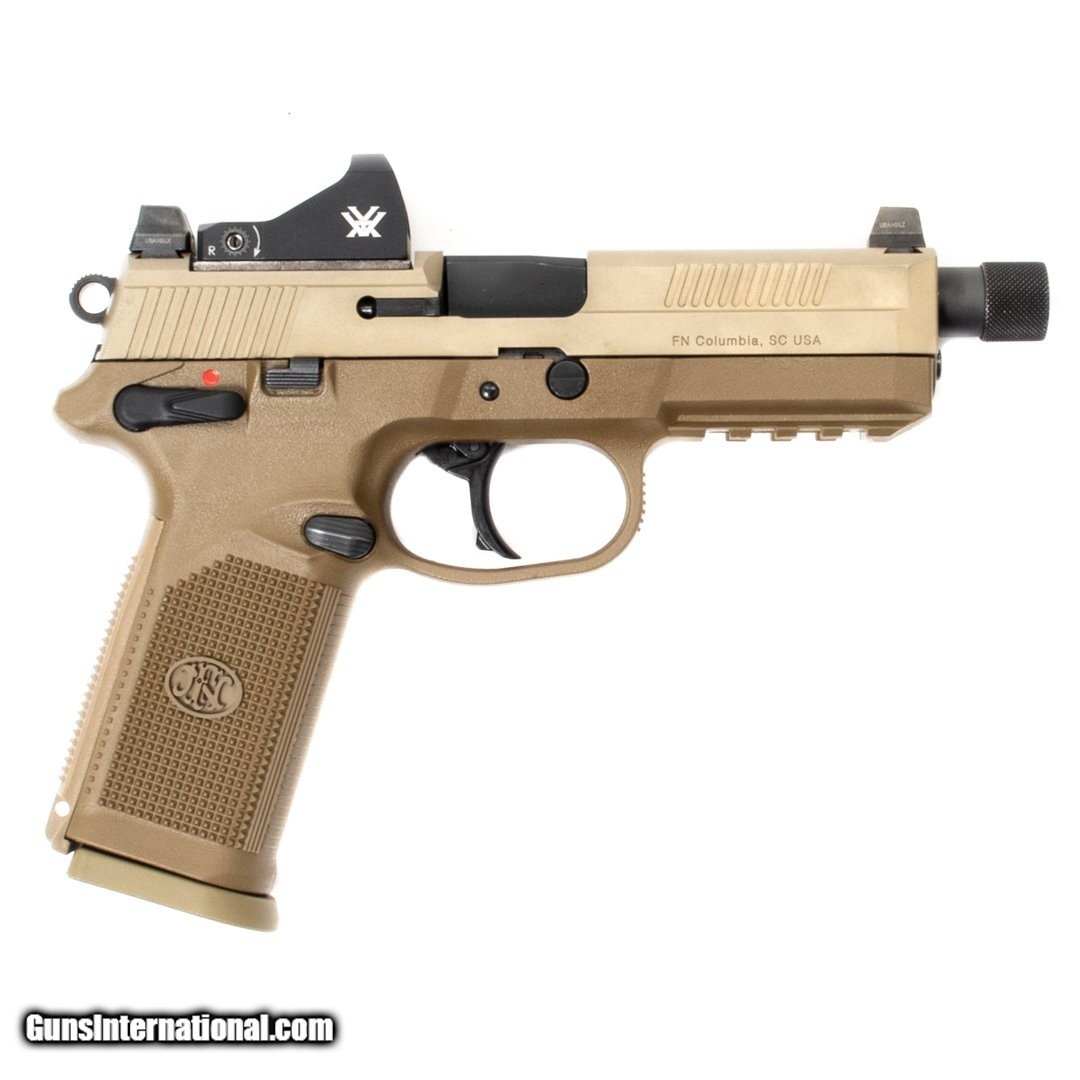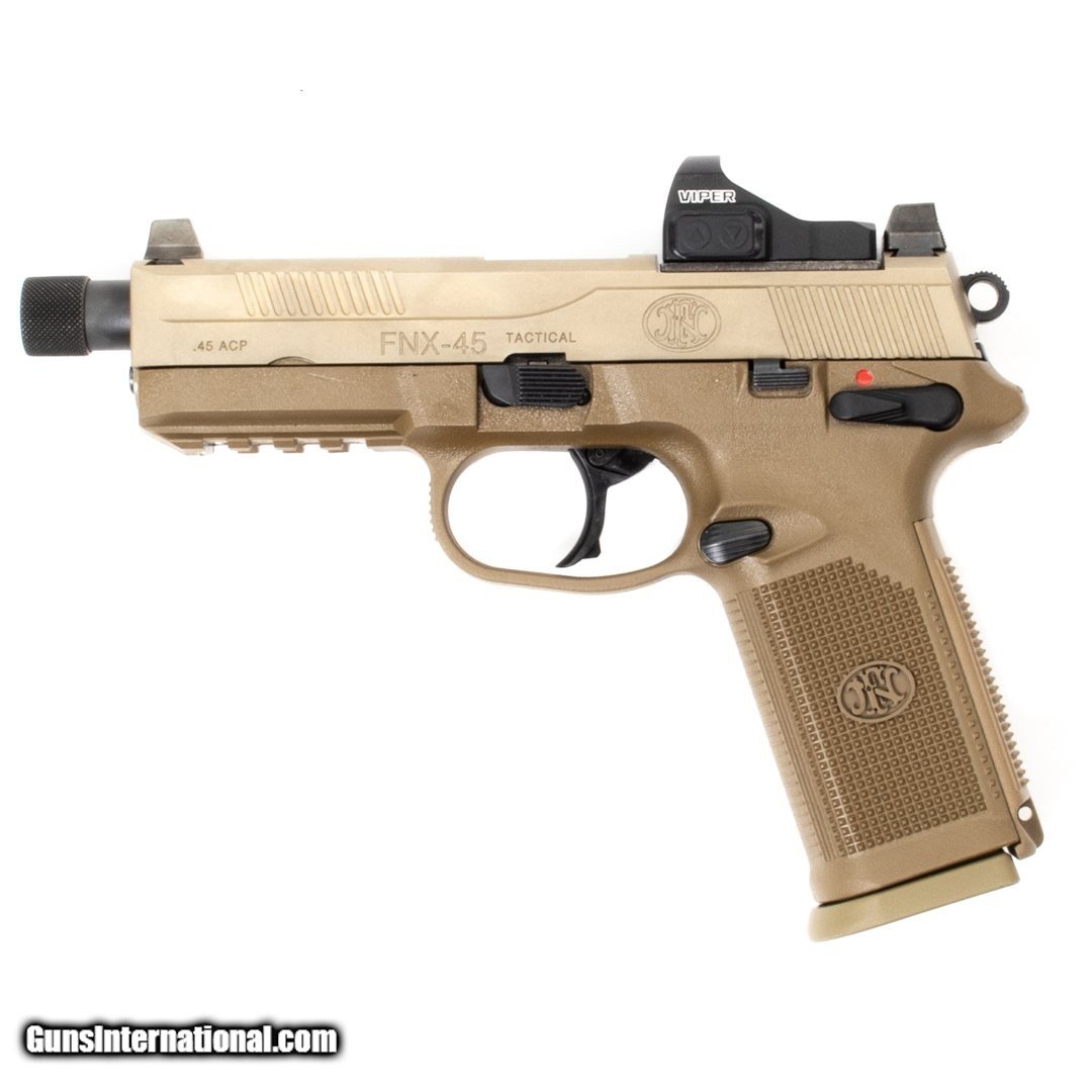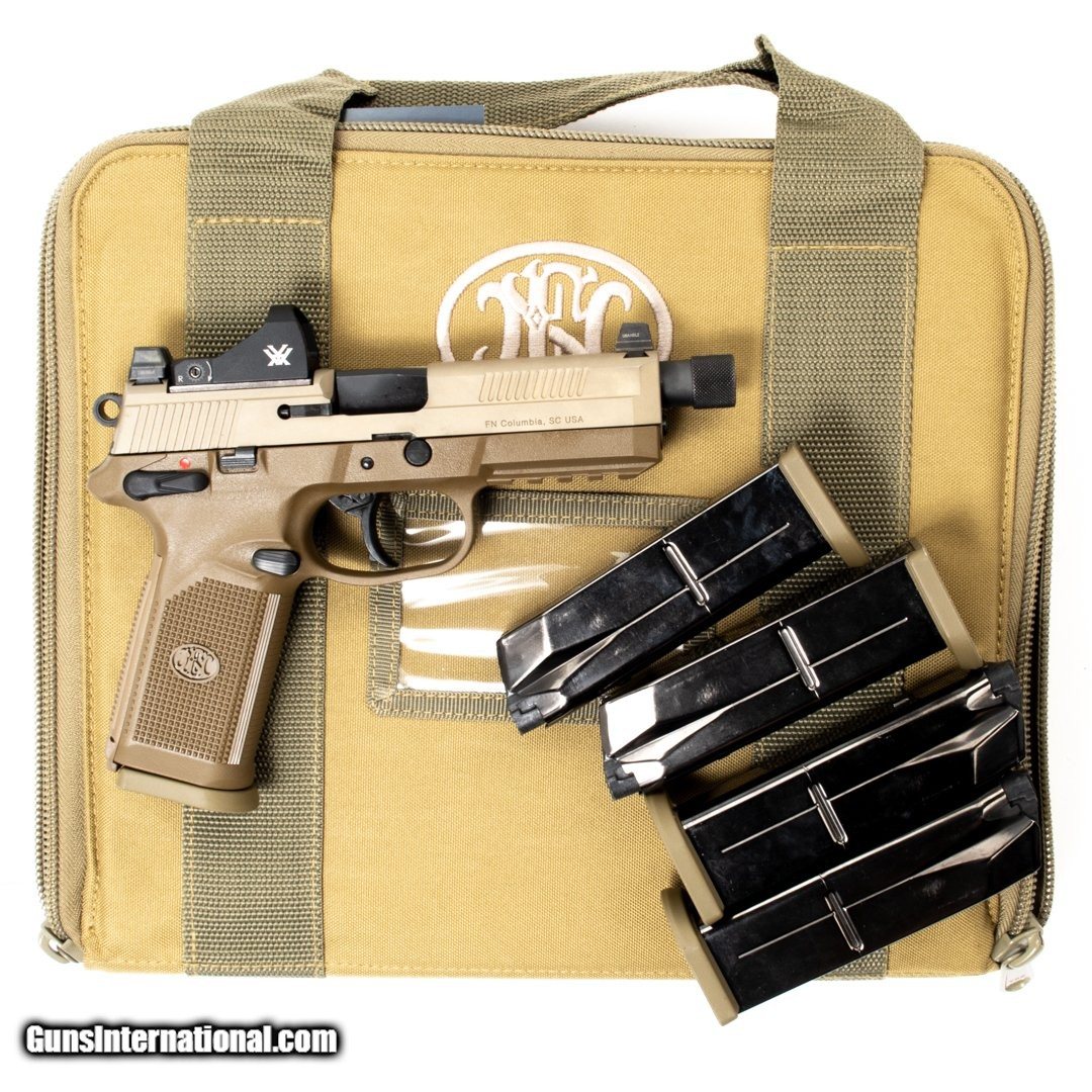 Description: Guns Listing ID: 573580 This FN comes with five 10-round magazines, a FN soft case, owner‚s manual, ambidextrous controls, a threaded barrel, extra backstraps, and it‚s equipped with a Vortex Viper red dot optic. Get the best bang for your buck when you get a Certified Used Firearm . When you see the Certified Used stamp on any of our firearms, you can be confident that you‚re getting exactly what you want – a gun only in very good to excellent condition and held to the highest quality standard. All Certified Used Guns come with a ‚no questions asked‚ return policy . SOLD Manufacturer: FN Model: FNX-45 TACTICAL Caliber Info: .45 ACP Condition: Used - Certified Barrels: 5.40" BARREL Action: SEMI AUTOMATIC Finish: fde Weight: 1.8 |