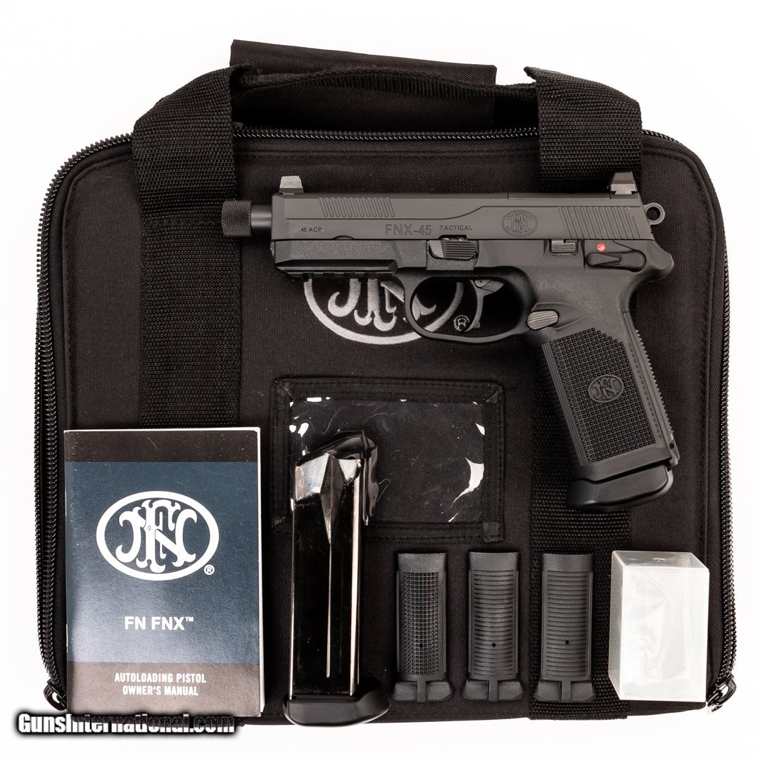 Description: Guns Listing ID: 615856 This optics ready FN comes with two 15-round magazines, the original box, owner‚s manual, an ambidextrous safety de-cocker, a threaded barrel, extra backstraps, and it‚s equipped with co-witness night sights. Get the best bang for your buck when you get a Certified Used Firearm . When you see the Certified Used stamp on any of our firearms, you can be confident that you‚re getting exactly what you want – a gun only in very good to excellent condition and held to the highest quality standard. All Certified Used Guns come with a ‚no questions asked‚ return policy . Manufacturer: FN Model: FNX-45 TACTICAL Caliber Info: .45 ACP Condition: Used - Certified Barrels: 5.40" BARREL Action: SEMI AUTOMATIC Finish: black Weight: 2.2 Price: $899.99 Contact Seller |