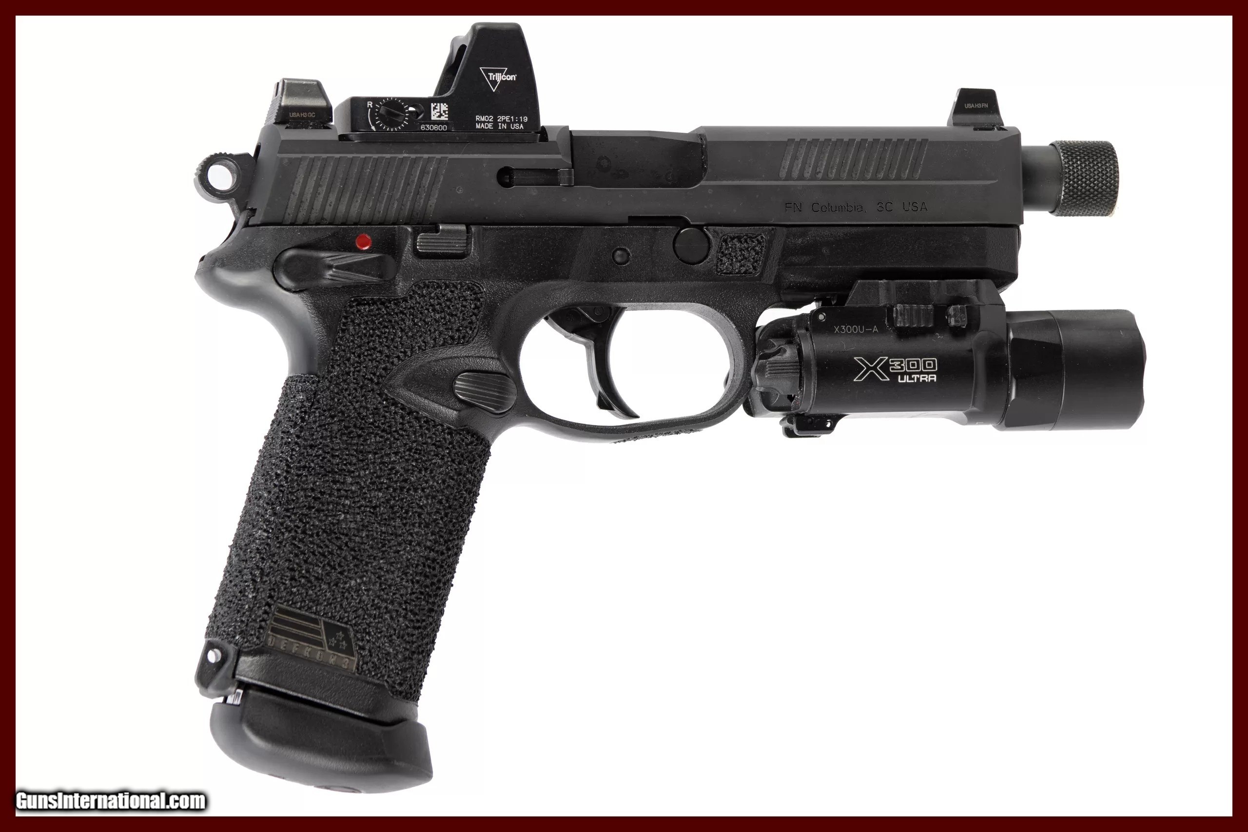 Description: FN FNX-45 Tactical chambered in 45 ACP with a 5¼ inch threaded barrel, mirror-shine bore with nice sharp rifling. This pistol comes with a FN soft case, 1 extra mag, optic case, and is complimented with a Trijicon RMR Type 2, Surefire X300 Ultra, and stippling job by Defkon 3. The NRA grading condition for this USED firearm is Excellent. Dury's Lifetime Warranty: All firearms purchased from Dury’s Gun Shop, NEW or USED, are covered by a lifetime warranty. We will repair or replace, at our discretion, any firearm purchased from Dury’s Gun Shop, Inc. for as long as it is owned by the purchaser. This warranty is not transferable. WE BUY GUNS! NO COLLECTION TOO BIG OR SMALL FOR OUR GUNS INTERNATIONAL CUSTOMERS ALL OF OUR FIREARMS CAN BE PURCHASED DIRECTLY FROM OUR DURY'S GUNS SITE ! SOLD Manufacturer: FNH USA Model: FNX 45 Tactical Caliber Info: 45 ACP Barrels: 5inches |