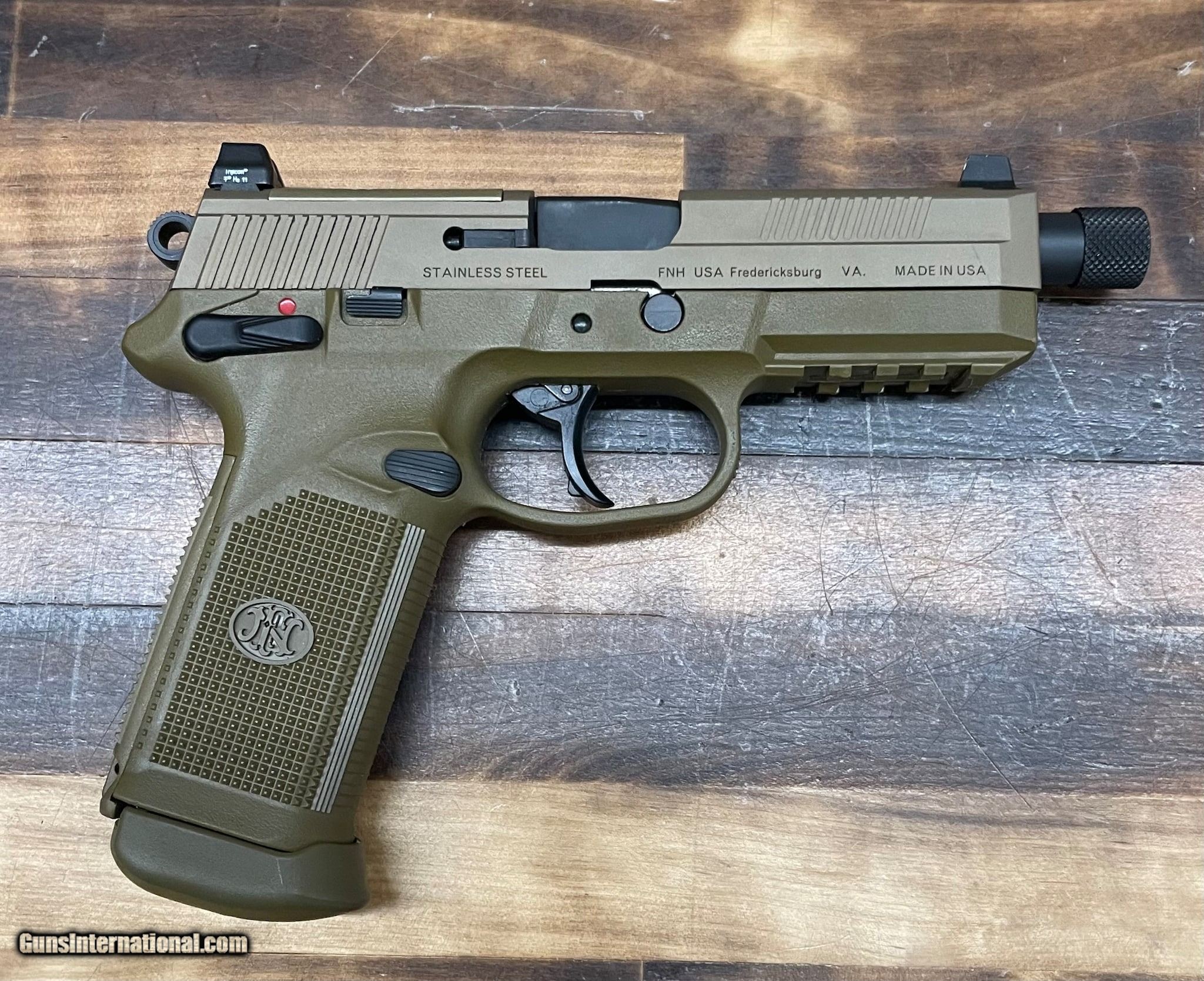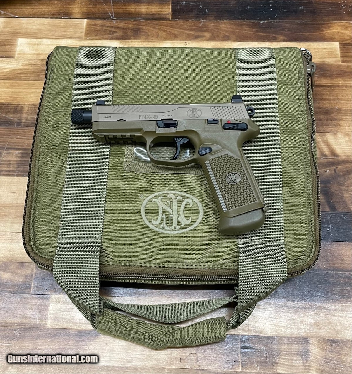 Description: Guns Listing ID: 574179 FN FNX-45 chambered in 45ACP in excellent condition. Includes: A 5.5\" Threaded Barrel Original Soft Case 4-14 Round Mags 1-15 Round Mag 4 Back Straps and 2 Red Dot Mounting Plates and Screws SOLD Manufacturer: FN Model: FNX-45 TACTICAL FDE Caliber Info: .45 ACP Condition: Used - Non-Certified Barrels: 5.5 BARREL Finish: FDE |