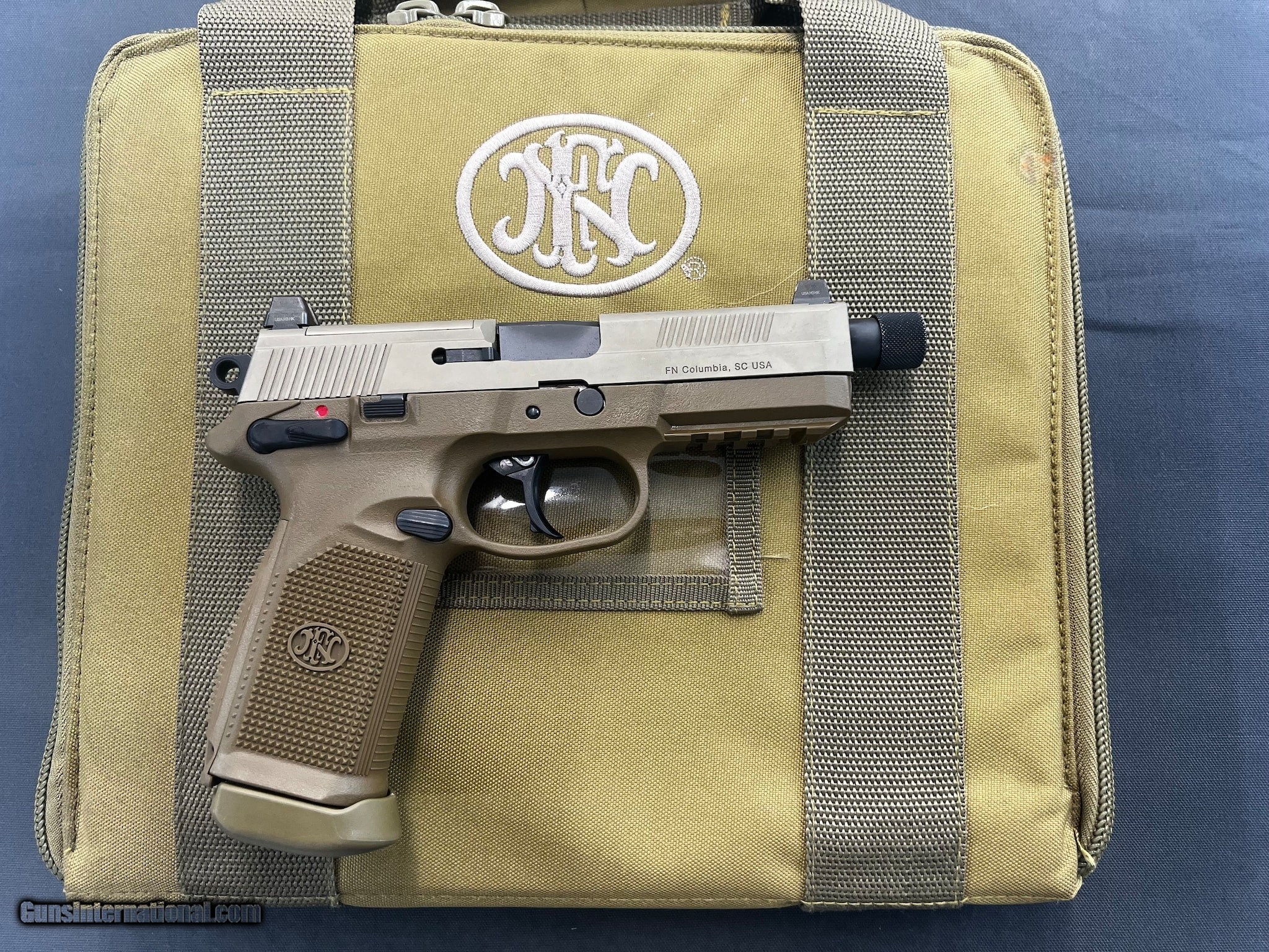 Description: Guns Listing ID: 1225976 FN Tactical 45ACP in FDE/ Comes Complete with 2 mags, zippered bag, Backstraps, Optic Plates, OWB Holster Great Condition SOLD Manufacturer: FN Model: FNX-45 Tactical, Threaded Barrel, w/Zipped Soft Case, 2 Mags, Lock, Backstraps, Optic Plates Caliber Info: .45 ACP Condition: Used - Non-Certified Barrels: 5 BARREL Finish: FDE |
