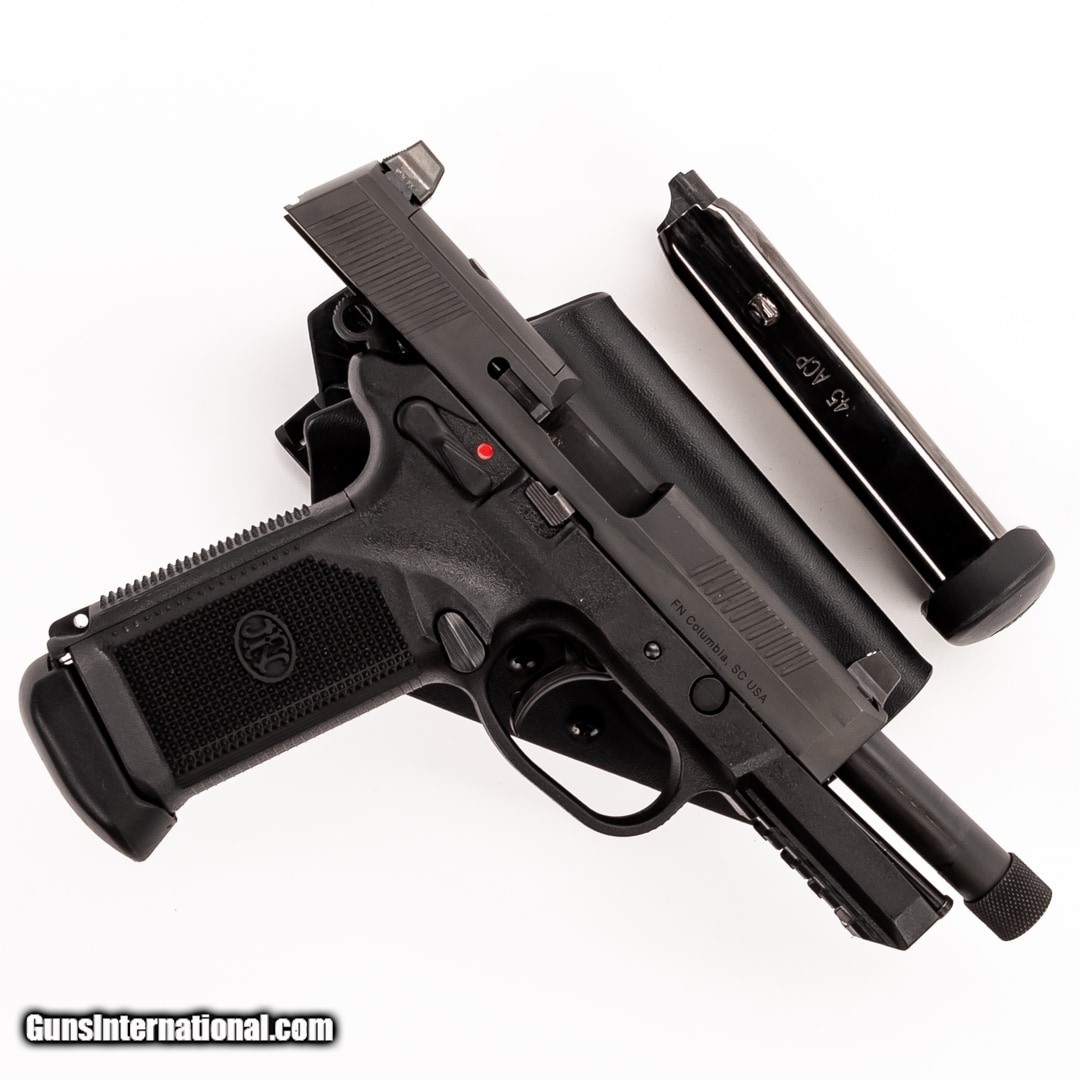 Description: Guns Listing ID: 386067 This FNX 45 Tactical features a flat black finish and ships in the original soft case with 2-15rd magazines, right hand T-Rex holster with a Safari land clip, and a manual. This pistol was designed for combat operations and will work well for self-defense, home defense, and duty use. SOLD Manufacturer: FN Model: FNX-45 TACTICAL Caliber Info: .45 ACP Condition: Used - Certified Barrels: 5.25 BARREL Finish: BLACK |