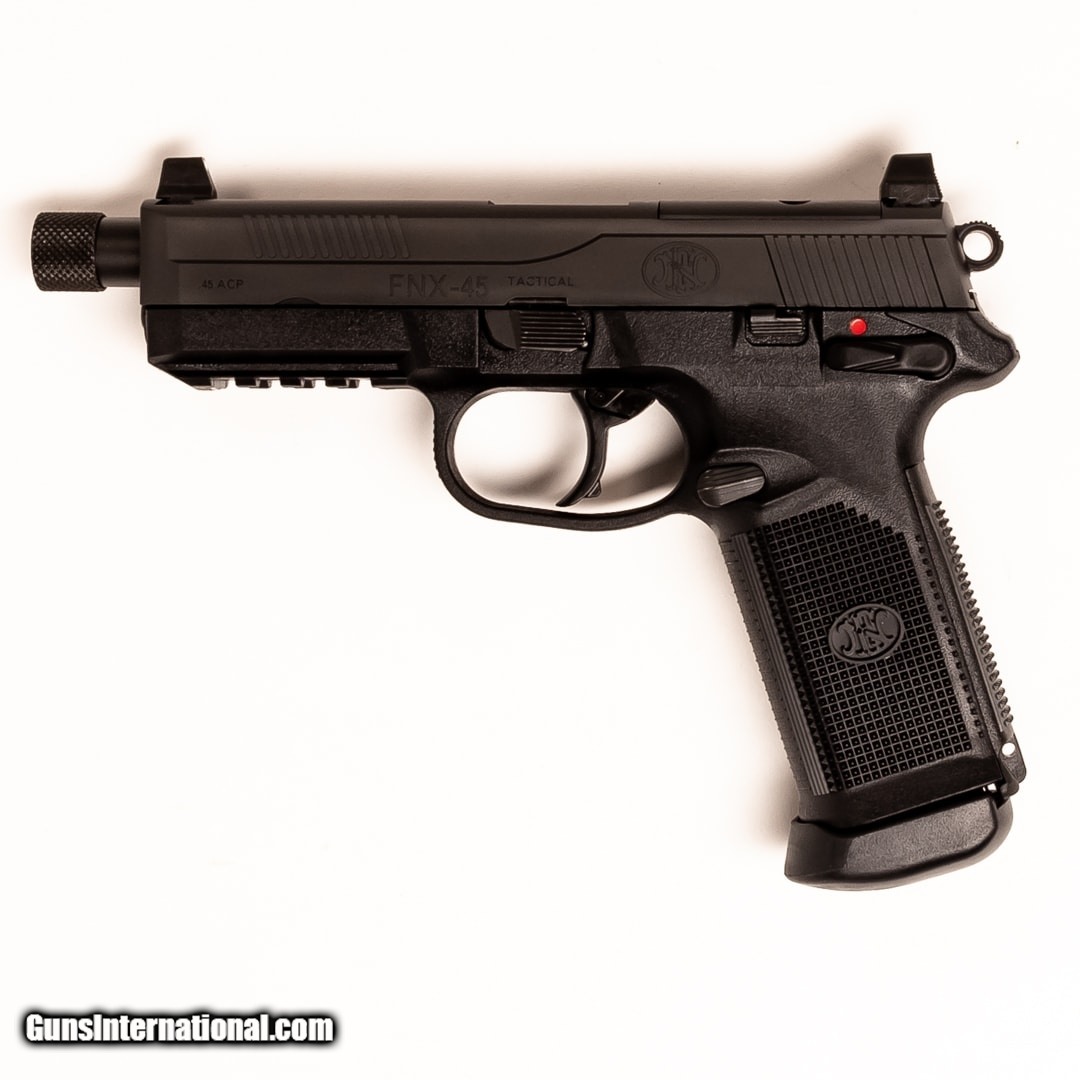 Description: Guns Listing ID: 632874 Developed for the U.S. Joint Combat Pistol Program, this FN FNX-45 Tactical is a 100% American-made semi-auto handgun and improvement on the FNP-45 Tactical. With unmatched performance, it is chambered in 45 ACP and offers fully ambidextrous controls. The polymer frame utilizes a low-bore axis, which reduces recoil, improves control, and offers natural point-ability, while the stainless steel barrel has a threaded muzzle. An integral rail makes for easy mounting of accessories. 3-15 round magazines, the original soft case, manual, 4 backstraps, and optics plates are included. Get the best bang for your buck when you get a Certified Used Firearm . When you see the Certified Used stamp on any of our firearms, you can be confident that you’re getting exactly what you want – a gun only in very good to excellent condition and held to the highest quality standard. All Certified Used Guns come with a ‘no questions asked’ return policy . PLUS, ALL CERTIFIED USED GUNS SHIP FREE! SOLD Manufacturer: FN Model: FNX-45 TACTICAL Caliber Info: .45 ACP Condition: Used - Certified Barrels: 5.30 barrel Finish: BLACK |