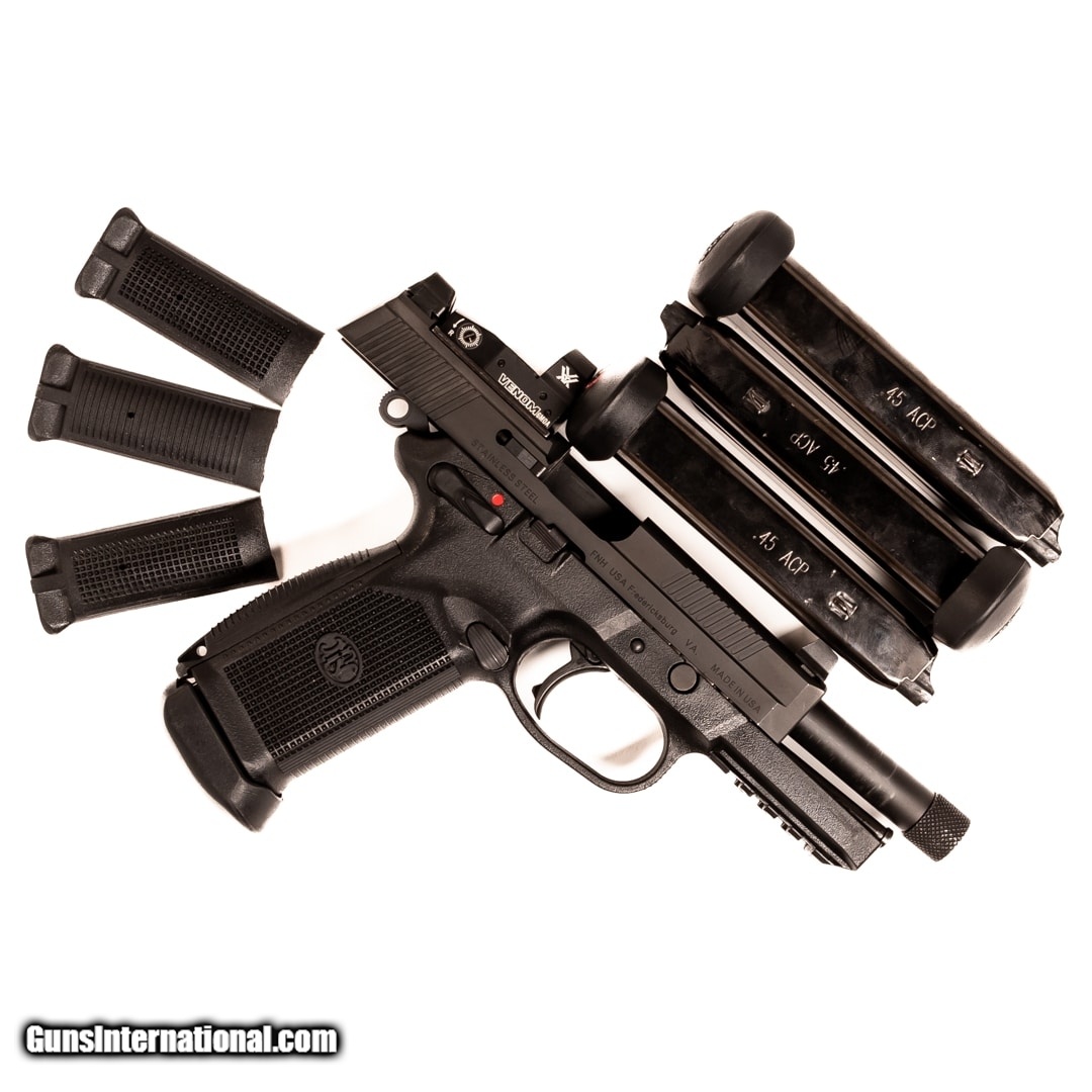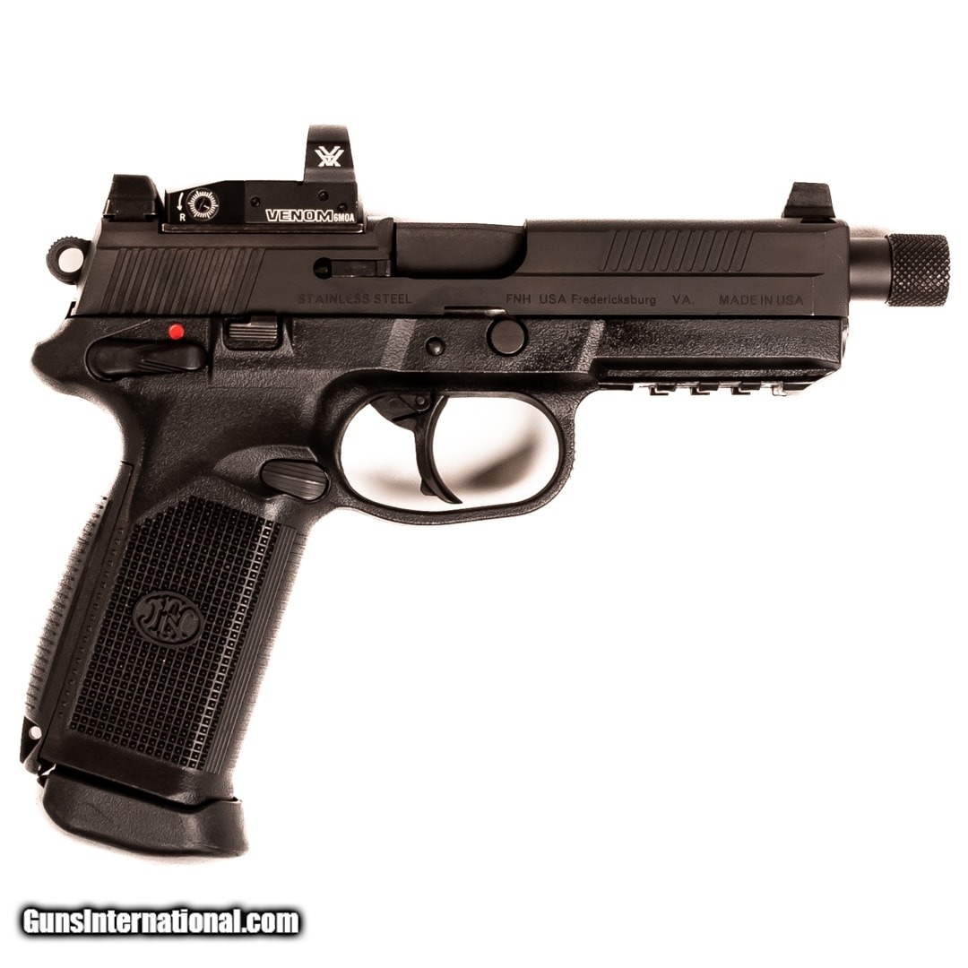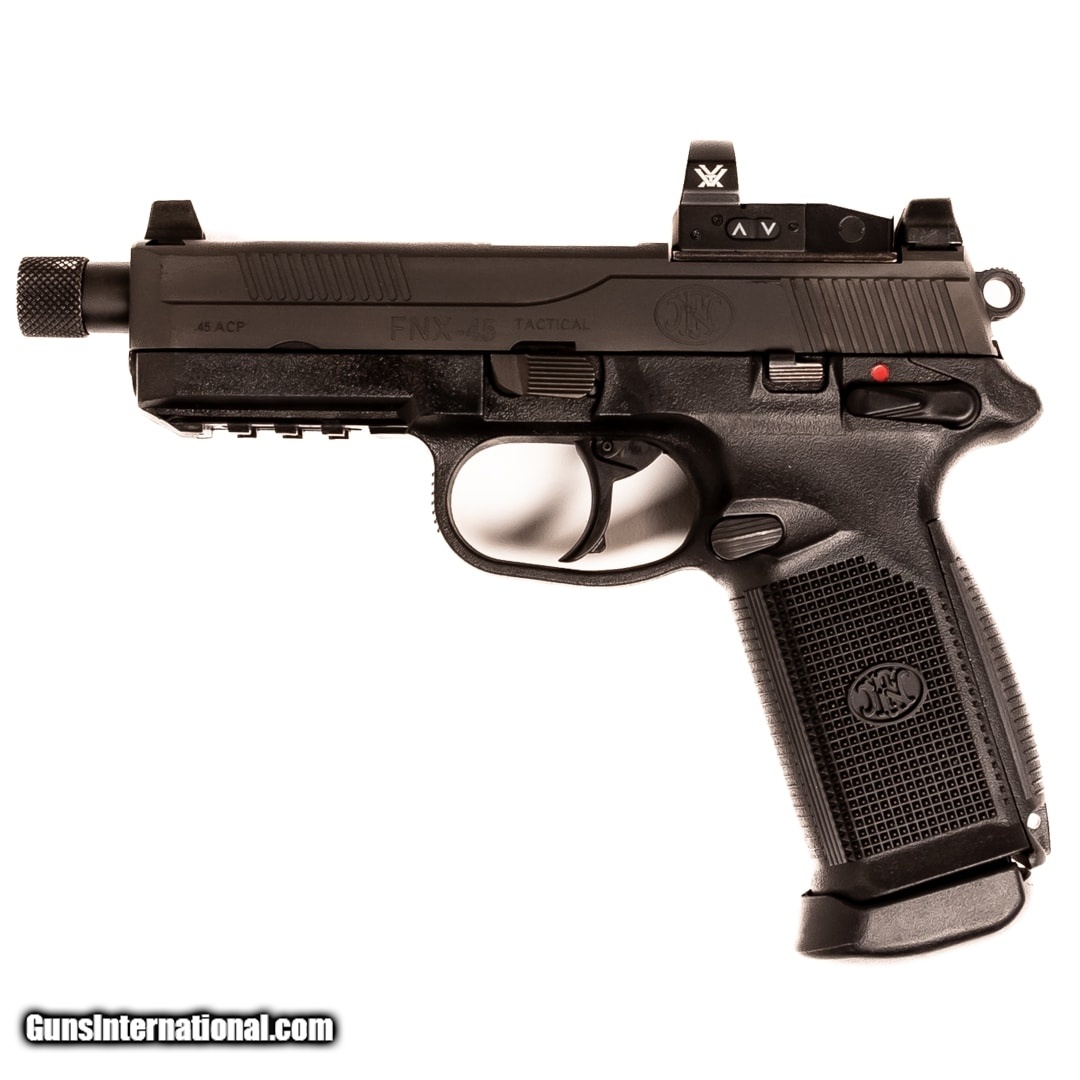 Description: Guns Listing ID: 686562 For sale is an FN FNX-45 Tactical, a semi-automatic handgun chambered in 45 ACP. It was designed for combat operations and will work well for self-defense, home defense, and duty use. This FNX-45 Tactical is equipped with co-witness height night sights, a safety decocker, a threaded barrel with protector, and a Vortex Venom 6MOA red dot. Purchase includes the original soft case, manual, four 15-round magazines, four sizes of backstraps, and optic plates. Get the best bang for your buck when you get a Certified Used Firearm . When you see the Certified Used stamp on any of our firearms, you can be confident that you’re getting exactly what you want – a gun only in very good to excellent condition and held to the highest quality standard. All Certified Used Guns come with a ‘no questions asked’ return policy . PLUS, ALL CERTIFIED USED GUNS SHIP FREE! SOLD Manufacturer: FN Model: FNX-45 TACTICAL Caliber Info: .45 ACP Condition: Used - Certified Barrels: 5.3 barrel Finish: BLACK |