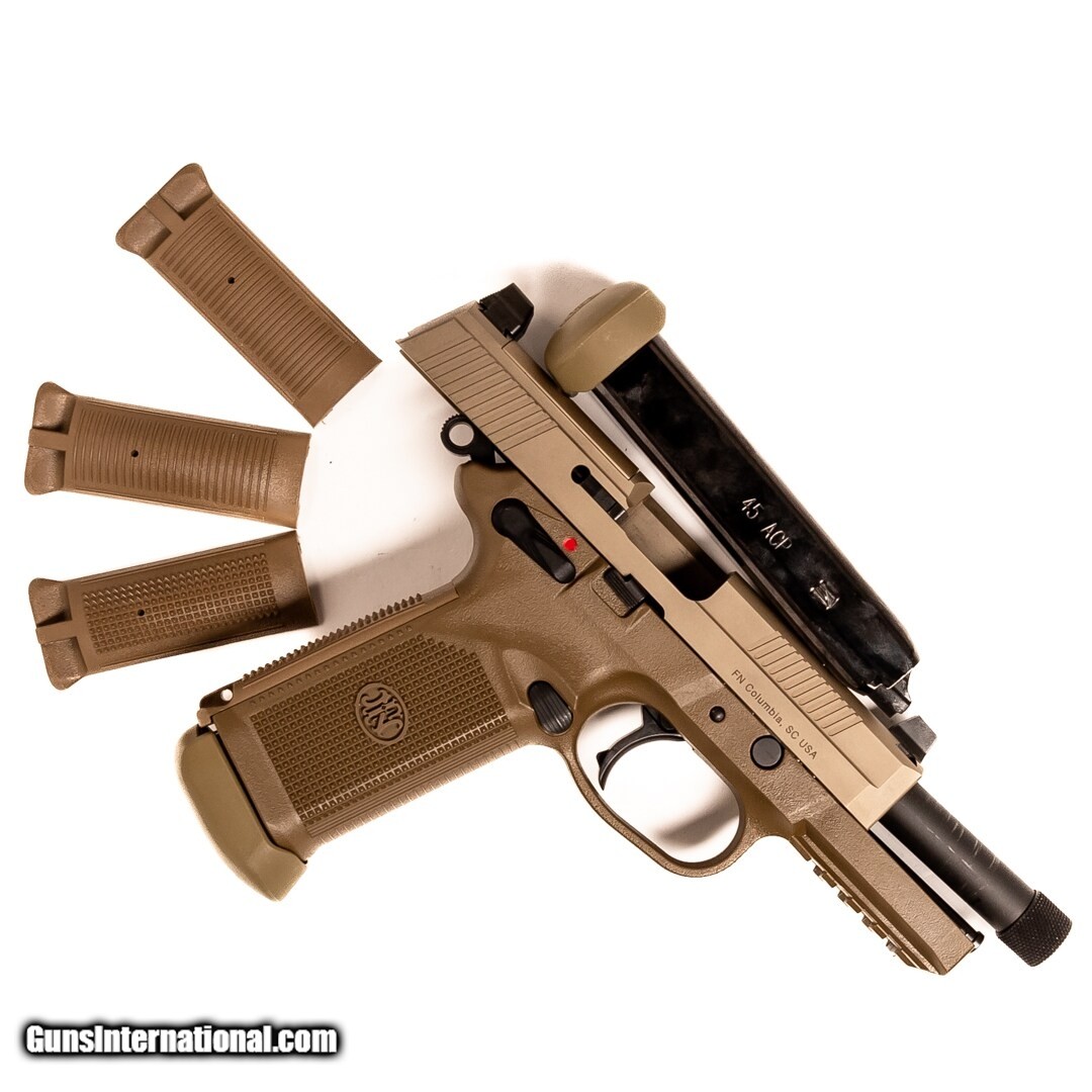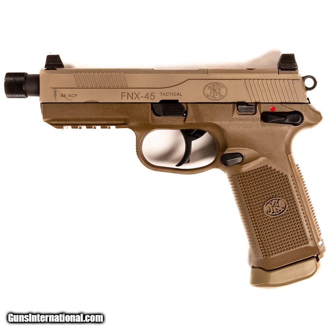 Description: Guns Listing ID: 716434 Developed for the U.S. Joint Combat Pistol Program, this FN FNX-45 Tactical is a 100% American-made semi-auto handgun and improvement on the FNP-45 Tactical. With unmatched performance, it is chambered in 45 ACP and offers fully ambidextrous controls. The polymer frame utilizes a low-bore axis, which reduces recoil, improves control, and offers natural point-ability, while the stainless steel barrel has a threaded muzzle. An integral rail makes for easy mounting of accessories. This FNX 45 Tactical features a Flat Dark Earth (FDE) finish. It comes with 2-15 round magazines, a factory soft case, manual, extra backstraps, and optic mounting plates. Get the best bang for your buck when you get a Certified Used Firearm . When you see the Certified Used stamp on any of our firearms, you can be confident that you’re getting exactly what you want – a gun only in very good to excellent condition and held to the highest quality standard. All Certified Used Guns come with a ‘no questions asked’ return policy . PLUS, ALL CERTIFIED USED GUNS SHIP FREE! SOLD Manufacturer: FN Model: FNX-45 TACTICAL Caliber Info: .45 ACP Condition: Used - Certified Barrels: 5.3 barrel Finish: FDE |