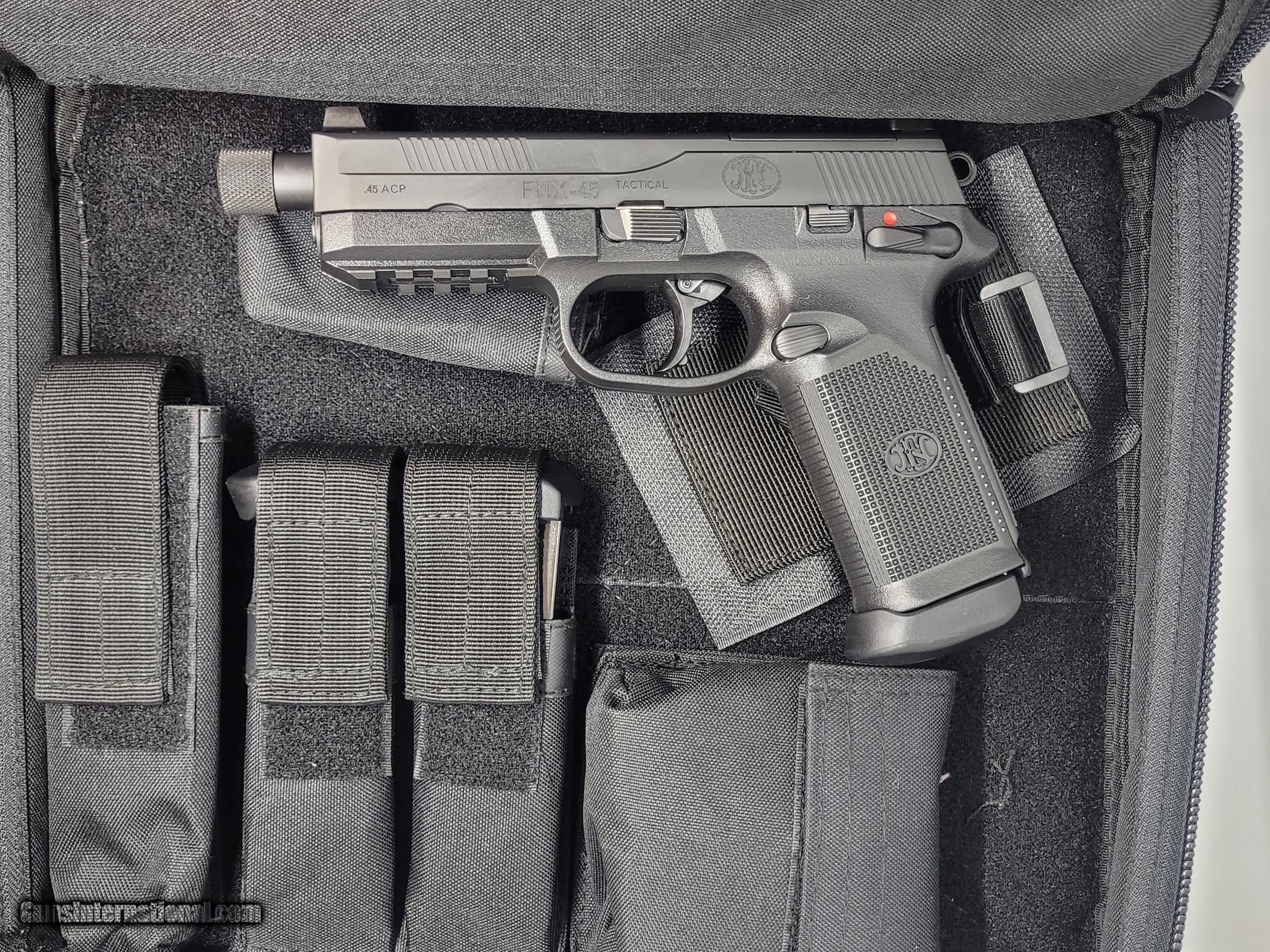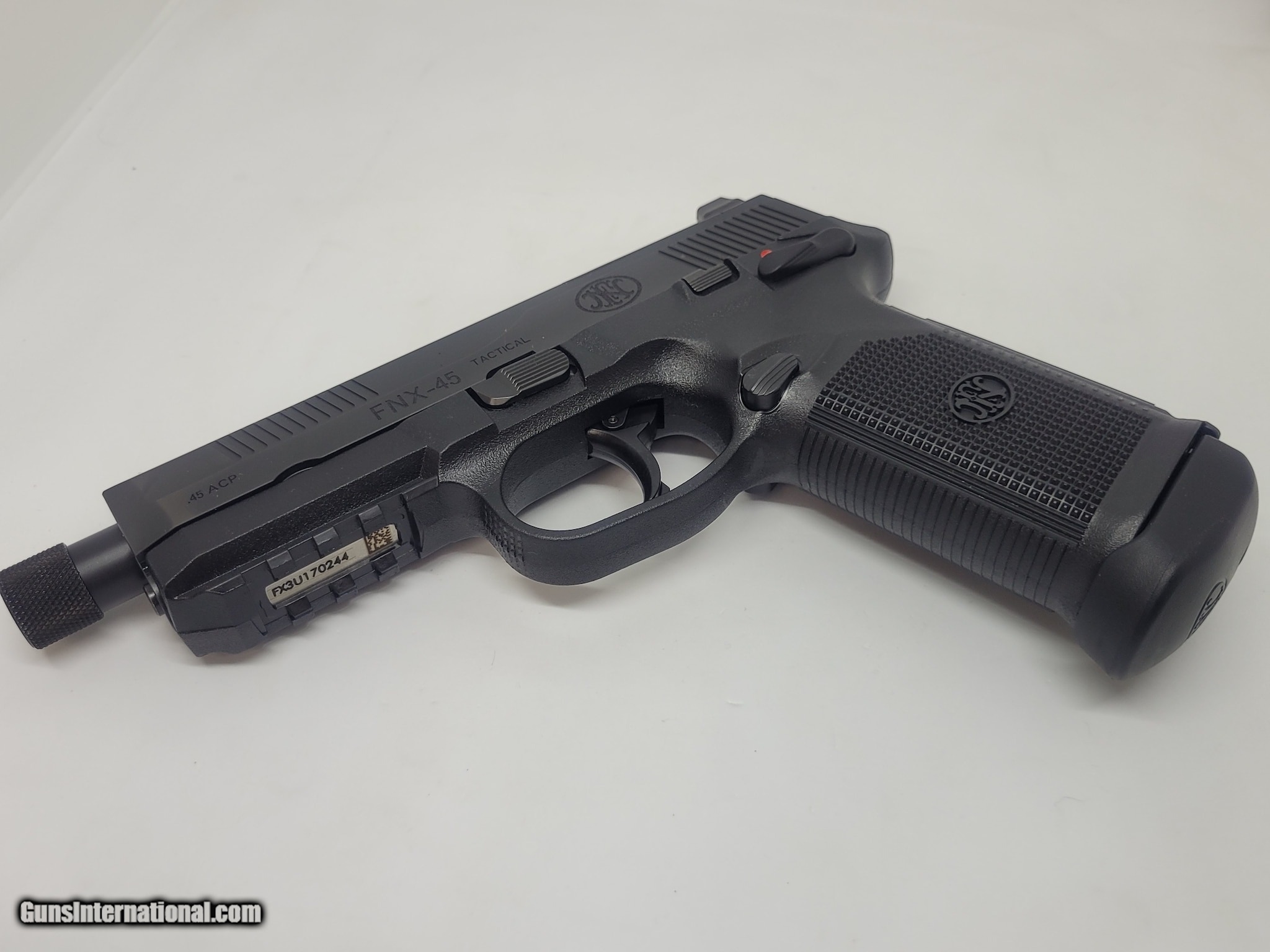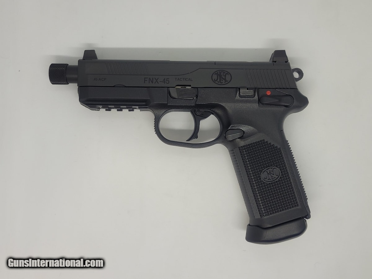 Description: Guns Listing ID: 890820 For sale is an FN FNX-45 Tactical. Chambered in 45 acp this pistol is virtually new but sold as \"used,\" since it came from a private party instead of a wholesaler. It comes equipt with original box, soft carry case and (3) 15 round magazines. Condition - Overall condition is mint, no blemishes or problems. Slide lock, magazine catch, double/single action trigger are all fully functional. For additional pictures or questions please ask. Great deal on a fantastic pistol! SOLD Manufacturer: FN Model: FNX-45 TACTICAL Caliber Info: .45 ACP Condition: Used - Non-Certified Barrels: 5.3 BARREL |