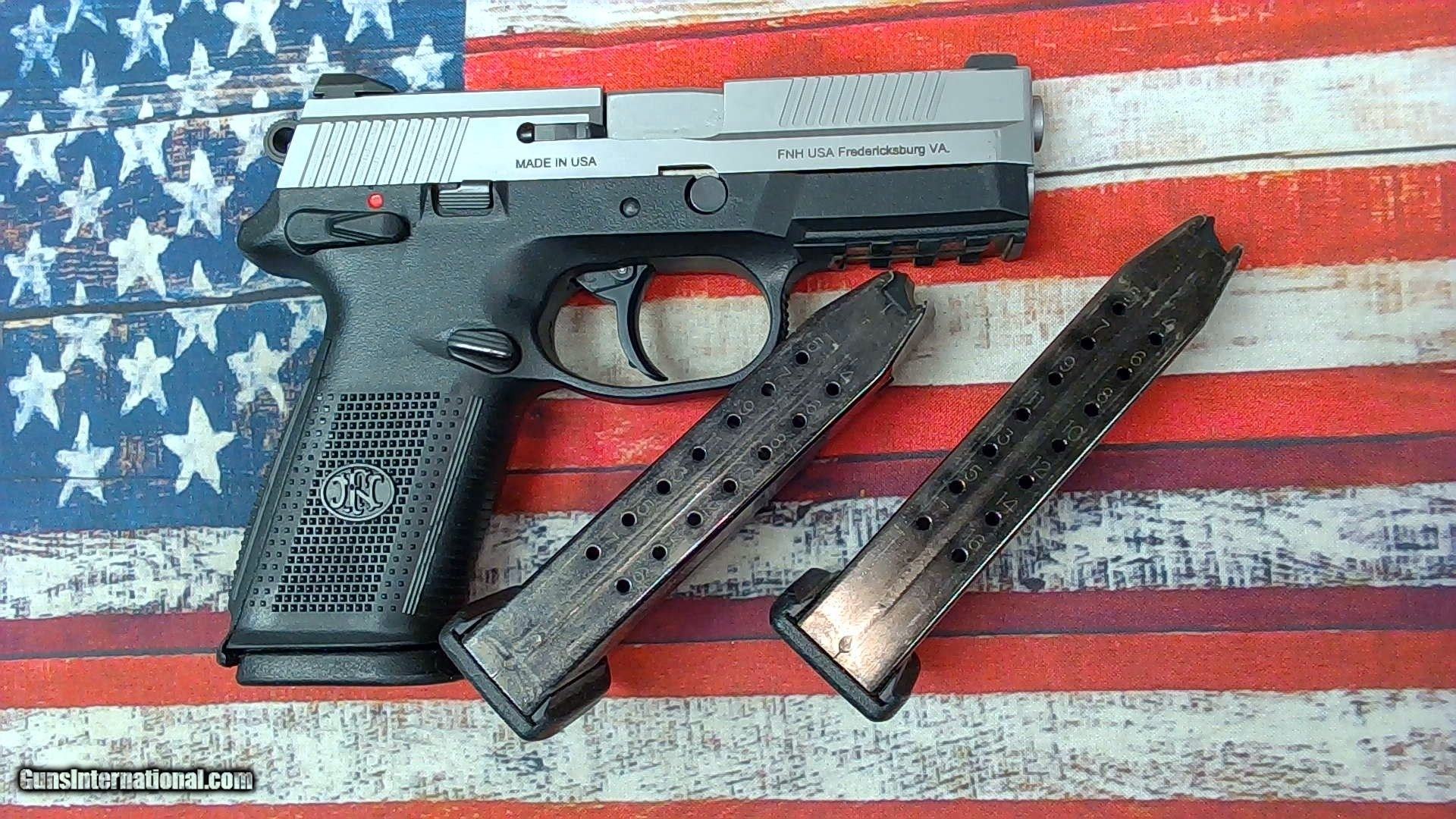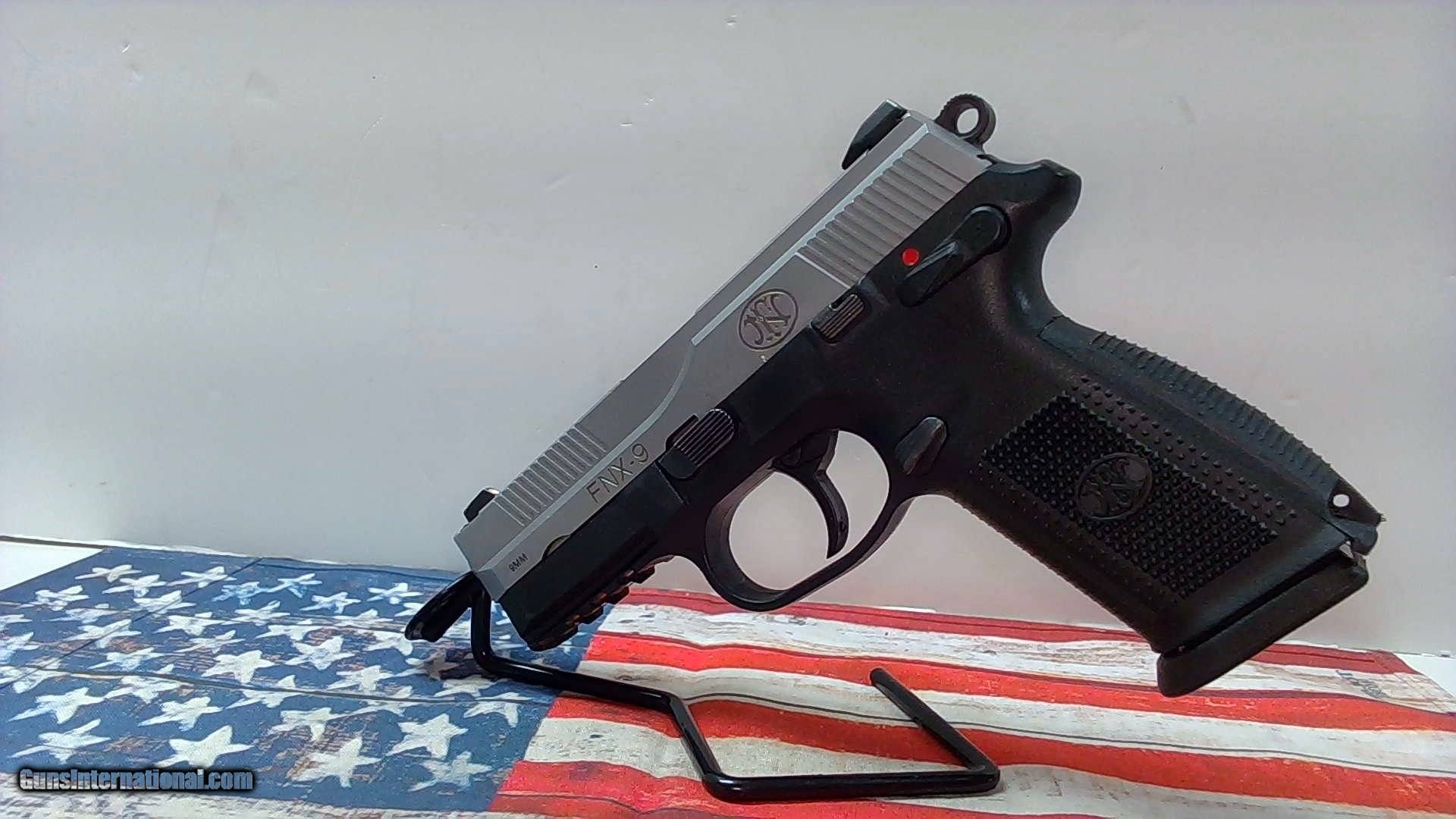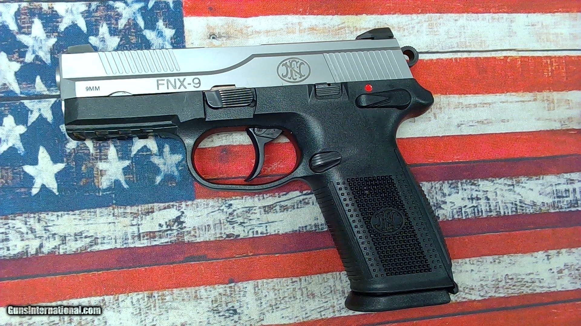 Description: Guns Listing ID: 484314 Pre-owned pistol in good overall condition. This weapon has some scratches on the slide. It is pre-owned and has been fired, but other than the scratches it‚‚s in very good condition. This is a FNH model FNX-9 chambered in 9mm with a 17 round capacity. Includes 3 magazines. The FNH FNX™-9 9MM Pistol features a 4\" stainless steel barrel, has a 17 round capacity and a manual safety. This pistol has become a fan favorite for its‚‚ low-bore axis which lowers recoil felt and in turn gives the shooter more control. The FNX™-9 also includes features such as checkered and ribbed grips, no snag carry, and a beautiful stainless slide design. These photos represent the exact firearm for sale. As with many used firearms, this item may contain scratches and/or signs of wear. This is not always the case but should not be unexpected. No original box or other accessorie SOLD Manufacturer: FN Model: FNX-9 Condition: Used - Non-Certified Barrels: 4 Gauge Info: 9MM LUGER (9x19 PARA) Finish: black & stainless |