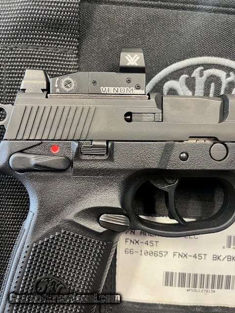 Description: Guns Listing ID: 572354 With Original Soft Sided Case and 1 15 Round Magazine Includes Vortex Venom Optic SOLD Manufacturer: FN Model: FNX45 TACTICAL Caliber Info: .45 ACP Condition: Used - Non-Certified Barrels: 5.3" BARREL Action: SINGLE/DOUBLE |