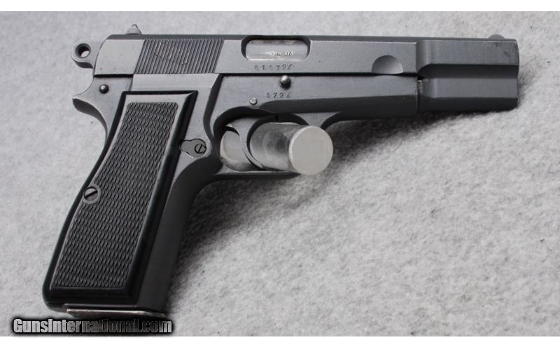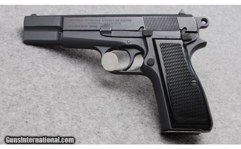 Description: This is an FN Herstal Hi-Power pistol in 9MM. This is a late war production pistol with WA140 Waffenamt and an eagle over swastika that was made without the magazine safety. The metal has been refinished in matte gray. The bore is shiny. A post-war police style holster is included. SOLD Curio/Relic: Yes Caliber Info: 9MM Metal Condition: Excellent Refinish Bore Condition: Bright and Shiny Barrels: 4 5/8 Triggers: SA Sights: Military Fixed Extras: A post-war police style holster is included Item Location: Reno, NV |