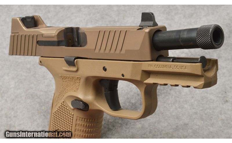 Description: This is a nice FN Herstal Model 509 Tactical semi auto pistol in 9MM Luger. The FDE slide and frame are very good. The blue threaded 4 1/2" barrel is very good with sharp clear rifling in its bore. This FN 509 pistol comes with (1) 17 round magazine, ambidextrous slide and magazine release, and the slide is cut for adding optics. This FN pistol does not come with a box or any other accessories. 9mm Luger SOLD Metal Condition: Very Good Bore Condition: Very Good Barrels: Blue Threaded 4 1/2 Triggers: Black Curved with Safety Striker Fired Stock Dimensions: LOP 3 1/2" Height 5 3/4" Length 8 Weight: 29 oz. Sights: Front Raised Tritium with Rear Raised 2 Dot Item Location: West Chester, OH |