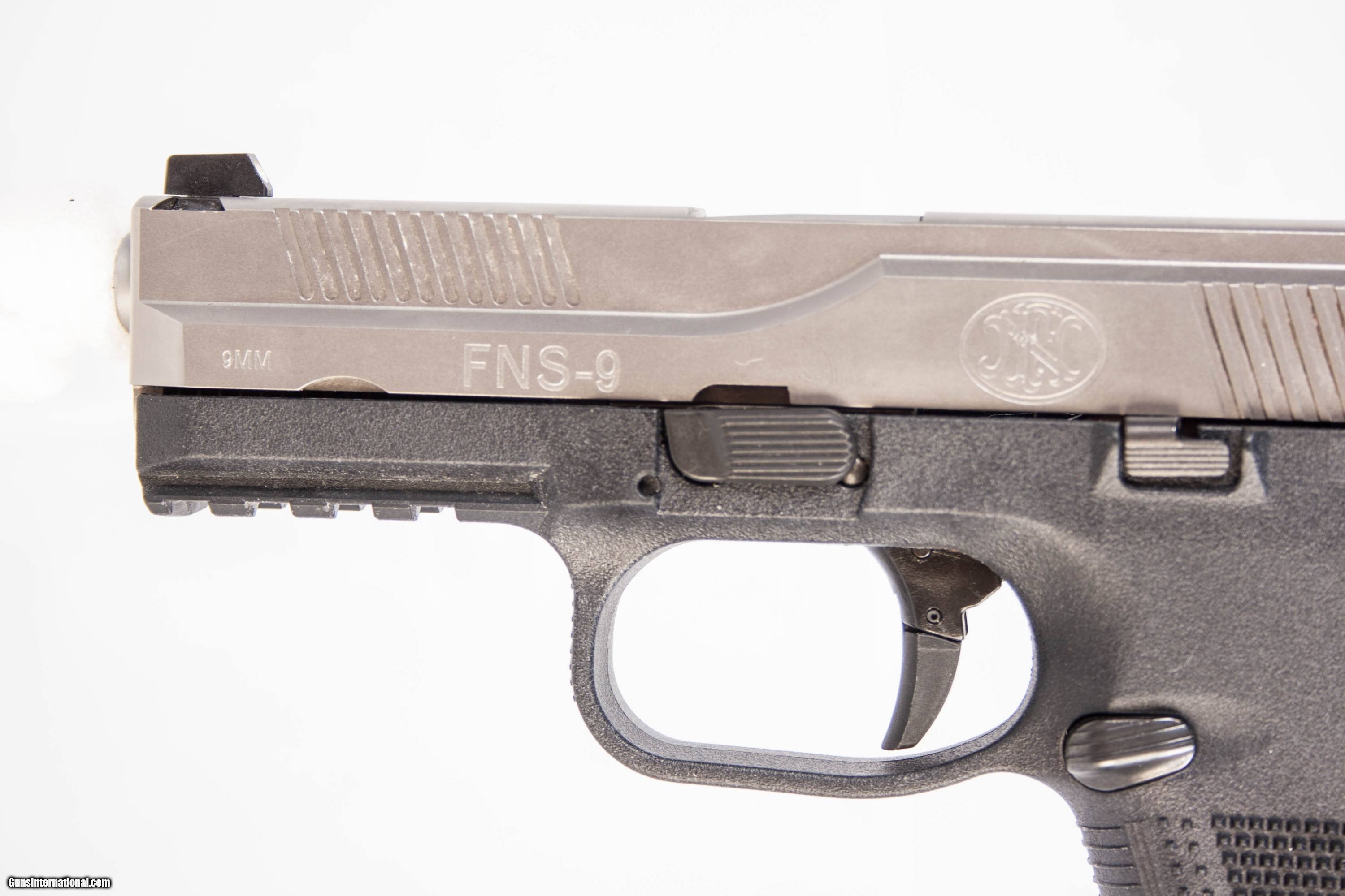 FN Herstal FNS-9 chambered in 9mm with a 4 inch barrel bright bore and good grooves with a case and 1 extra magazine. This gun is in excellent condition and is covered by Dury's Lifetime Warranty.