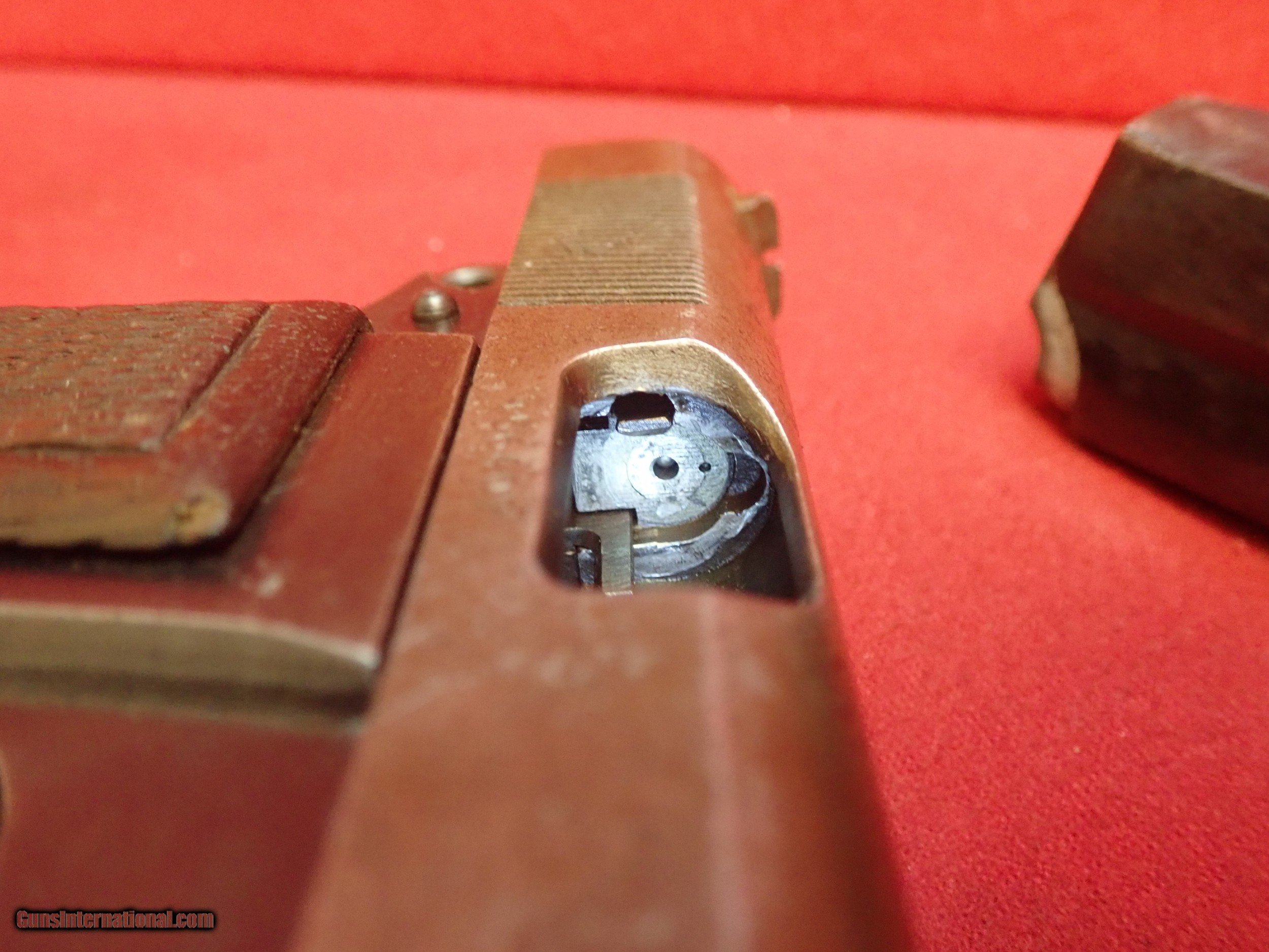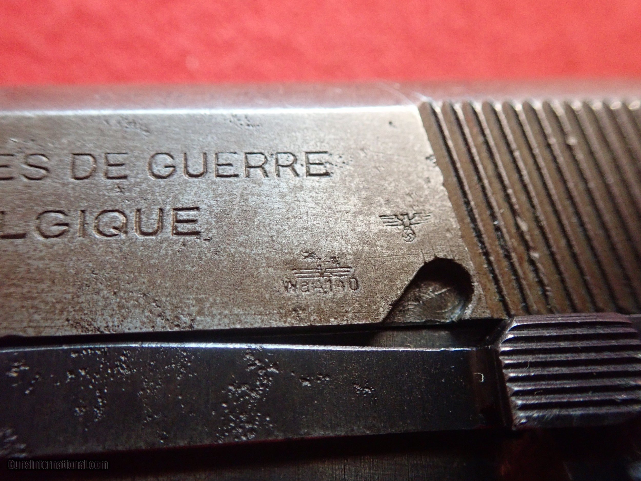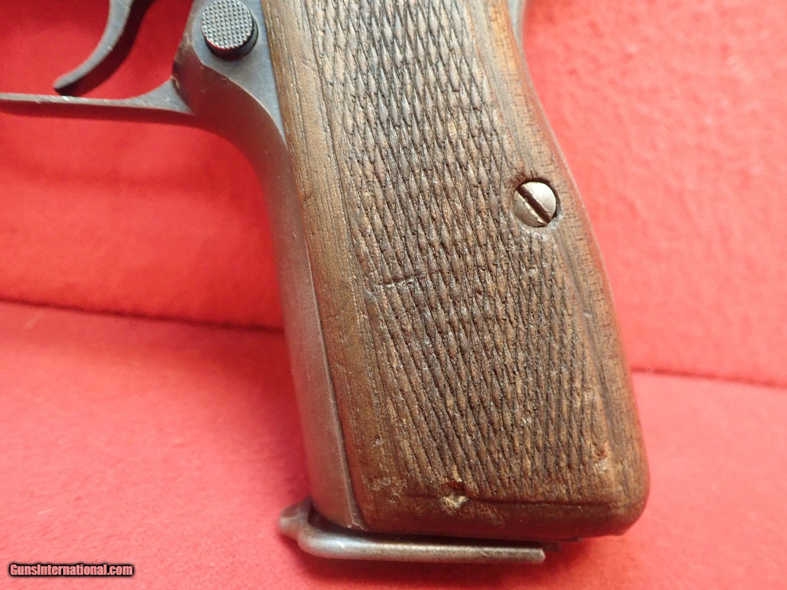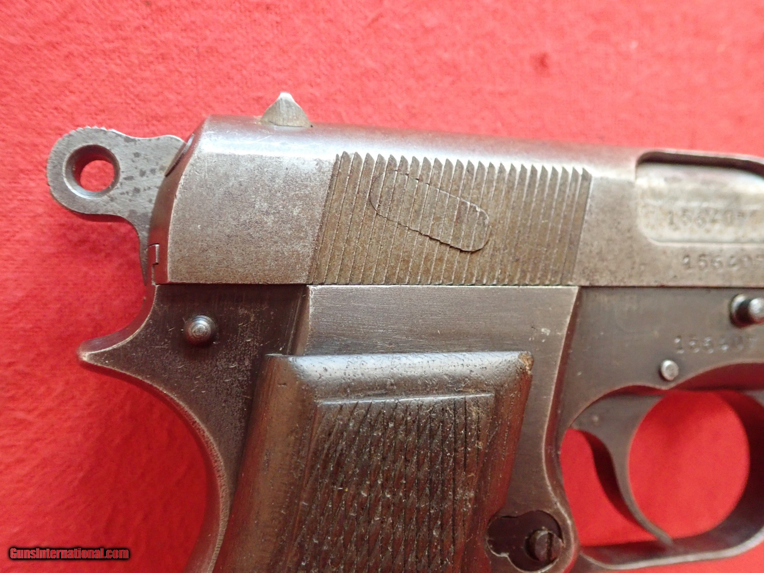 Description: Nazi FN Hi-Power 640b 9mm semi automatic pistol. This pistol is a Nazi occupation Browning Hi-Power, referred to as a 640b by the Wermacht. The pistol features fixed sights, checkered wood grip panels, and a lanyard loop hammer, in addition to WaA140 Waffenamt stamps, as shown. The pistol also has a magazine disconnect, which prevents the gun from firing when the magazine is removed. The pistol is in great working order with a smooth action, great bore and overall functionality. The thumb safety is a bit stiff, but still functional. The pistol has finish wear and small blemishes present, all of which is shown in the photos. The pistol includes a correct magazine. A must have for any WWII collector! Please refer to the photos to further assess the condition of the pistol. No handgun sales in MA. SOLD Curio/Relic: Yes Manufacturer: FN Model: 640b Serial Number: 156407 Caliber Info: 9mm |