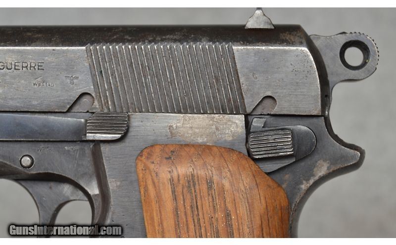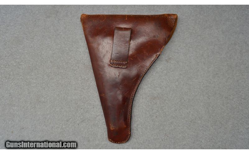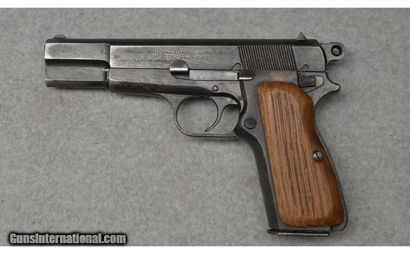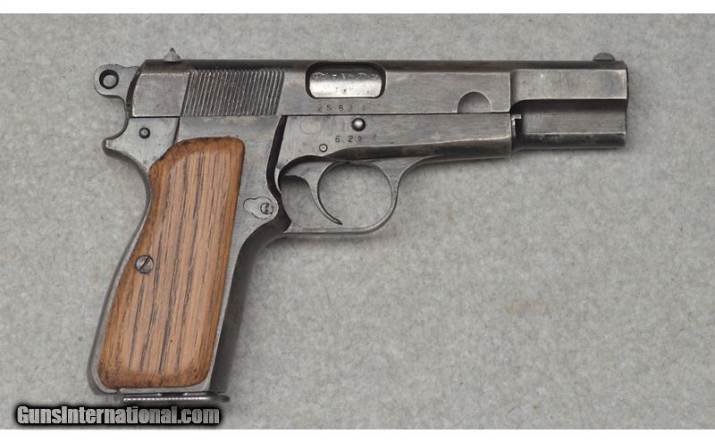 Description: FN Herstal Hi-Power Pistol with German proof marks and matching slide and frame. Part of the "B" series from when the Germans overtook the Belgian FN Factory. Spotted finish wear and wear marks throughout, and mechanically excellent. Includes leather holster. SN: 25629b 9mm Luger SOLD Metal Condition: Fair Wood Condition: Fair Bore Condition: Good Rifling Barrels: 4 3/4 Triggers: SA Butt Pad: Wood Grips Weight: 2 lb 1 oz Item Location: Fort Worth, TX |