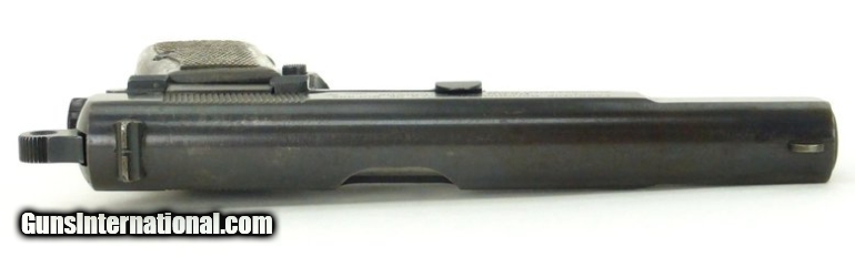 Description: FN Hi Power 9mm Para caliber pistol. Produced 1942-43 for the German Military. Matching serial numbers. The bore has strong rifling with some minor frosting. The magazine and grips are correct. About 97% finish with some patina. Near excellent condition. SOLD |