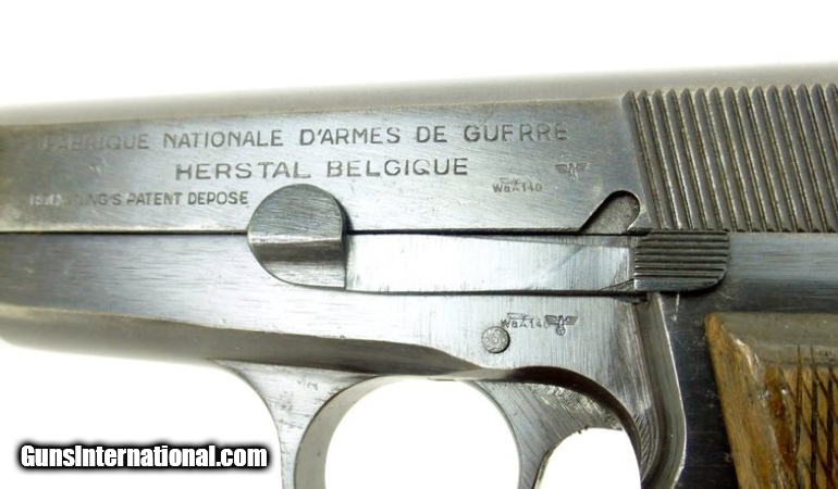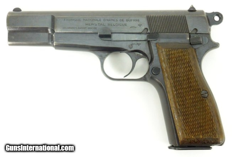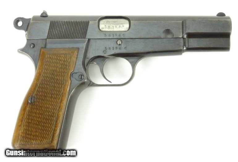 FN Hi Power 9mm Para caliber pistol. Produced 1942-43 for the German Military. Matching serial numbers. The bore has strong rifling with some minor frosting. The magazine and grips are correct. About 97% finish with some patina. Near excellent condition.