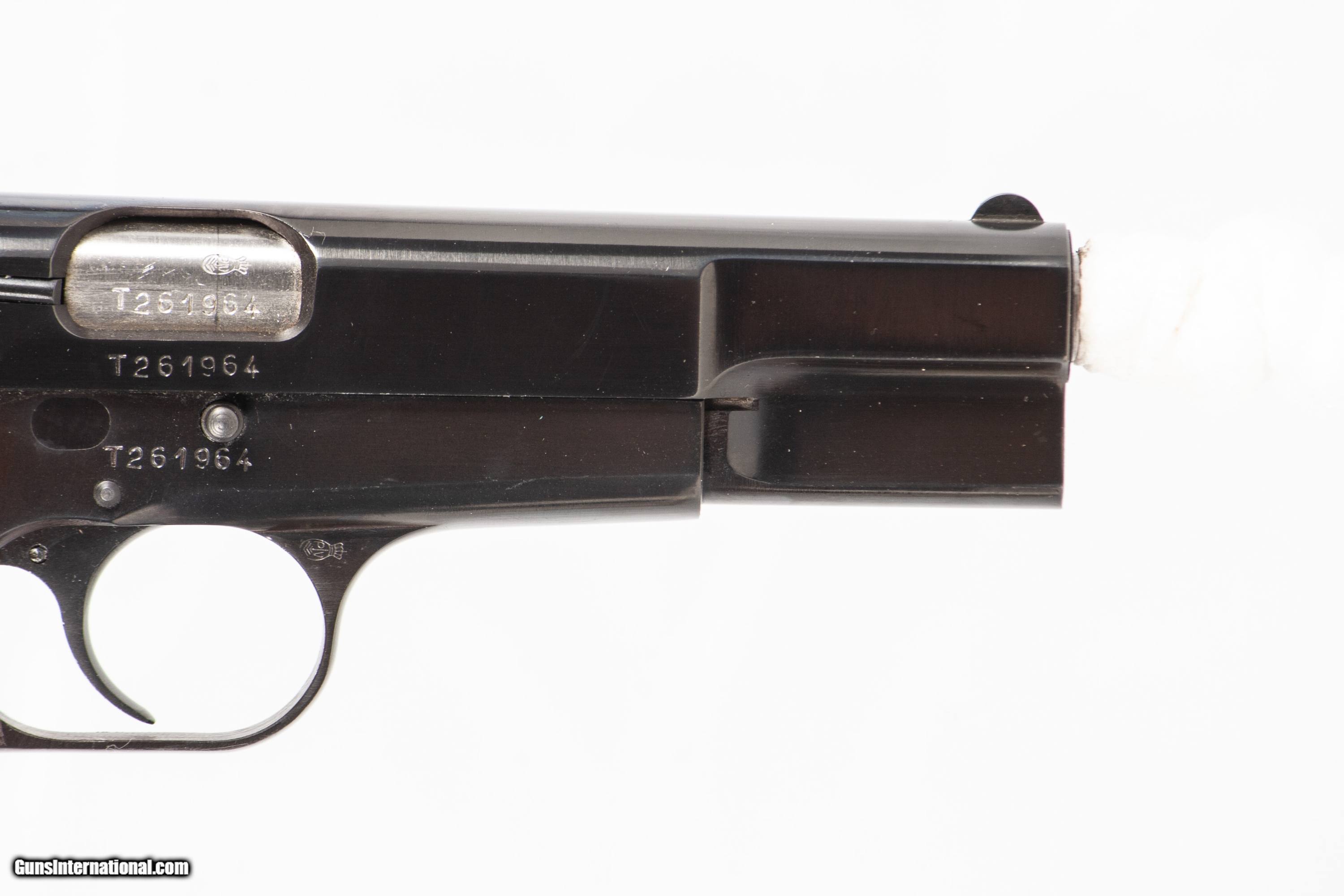 Description: Fabrique National Herstal Hi Power chambered for 9mm with a 4 3/4 inch barrel and a bright and shiny bore. This firearm is in excellent condition and is covered by Dury's Lifetime Warranty.