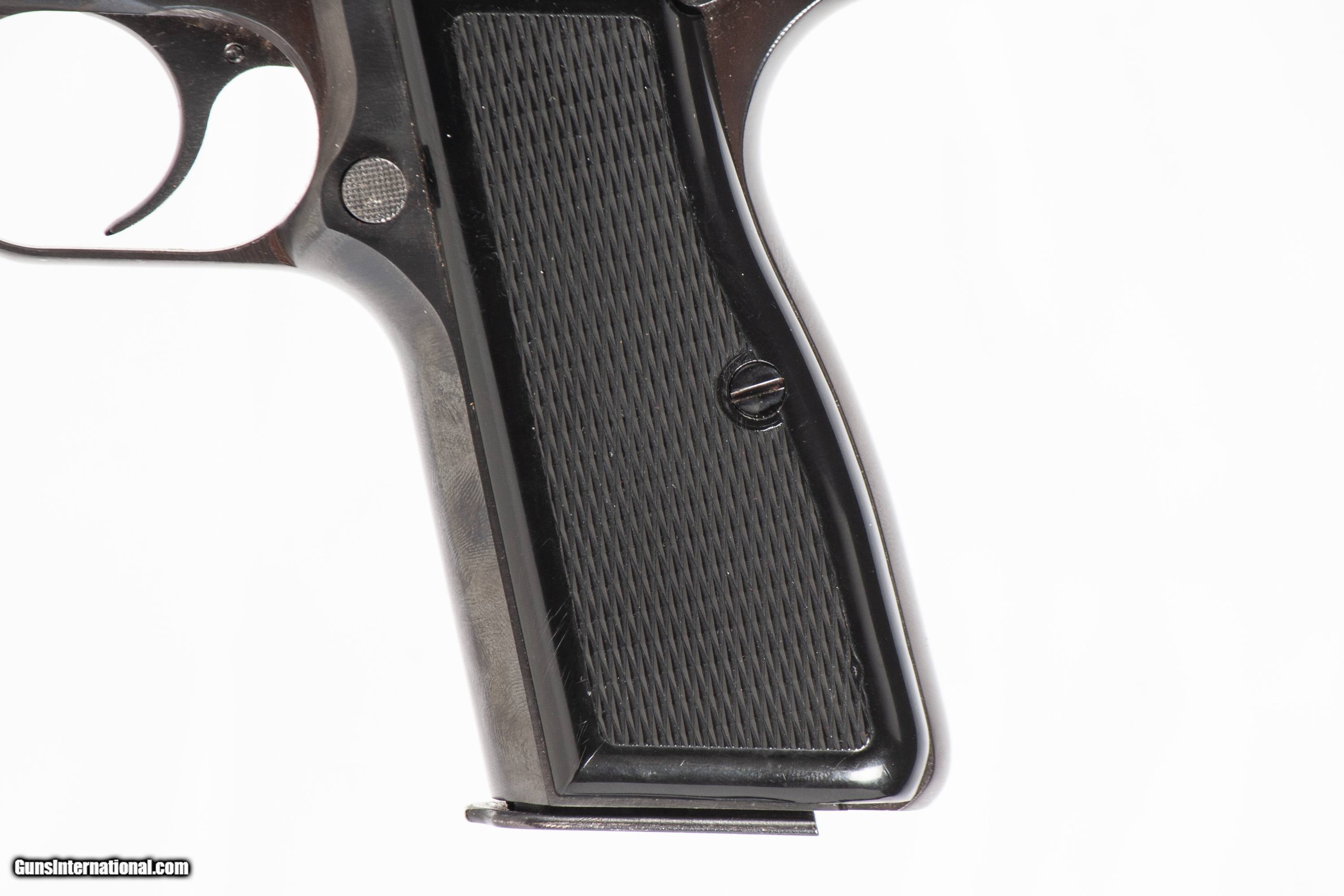 Fabrique National Herstal Hi Power chambered for 9mm with a 4 3/4 inch barrel and a bright and shiny bore. This firearm is in excellent condition and is covered by Dury's Lifetime Warranty.