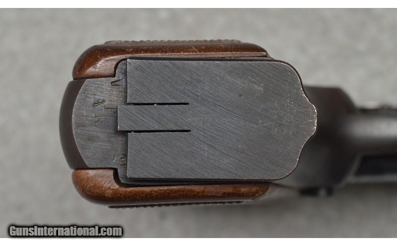 Description: FN Herstal Hi-Power pistol in excellent condition. This pistol feature German marks from the occupation of the FN factory, all numbers matching, MR stamped to right side of triggerguard and a Ring hammer. Checkered walnut grip panels and correct magazine. Little finish wear for its age with handling marks. SN: 336 9mm Luger SOLD Metal Condition: Excellent Wood Condition: Excellent Bore Condition: "Clean, Good Rifling Barrels: 4 3/4 Butt Pad: Wood Grips Weight: 2 lb Item Location: Fort Worth, TX |