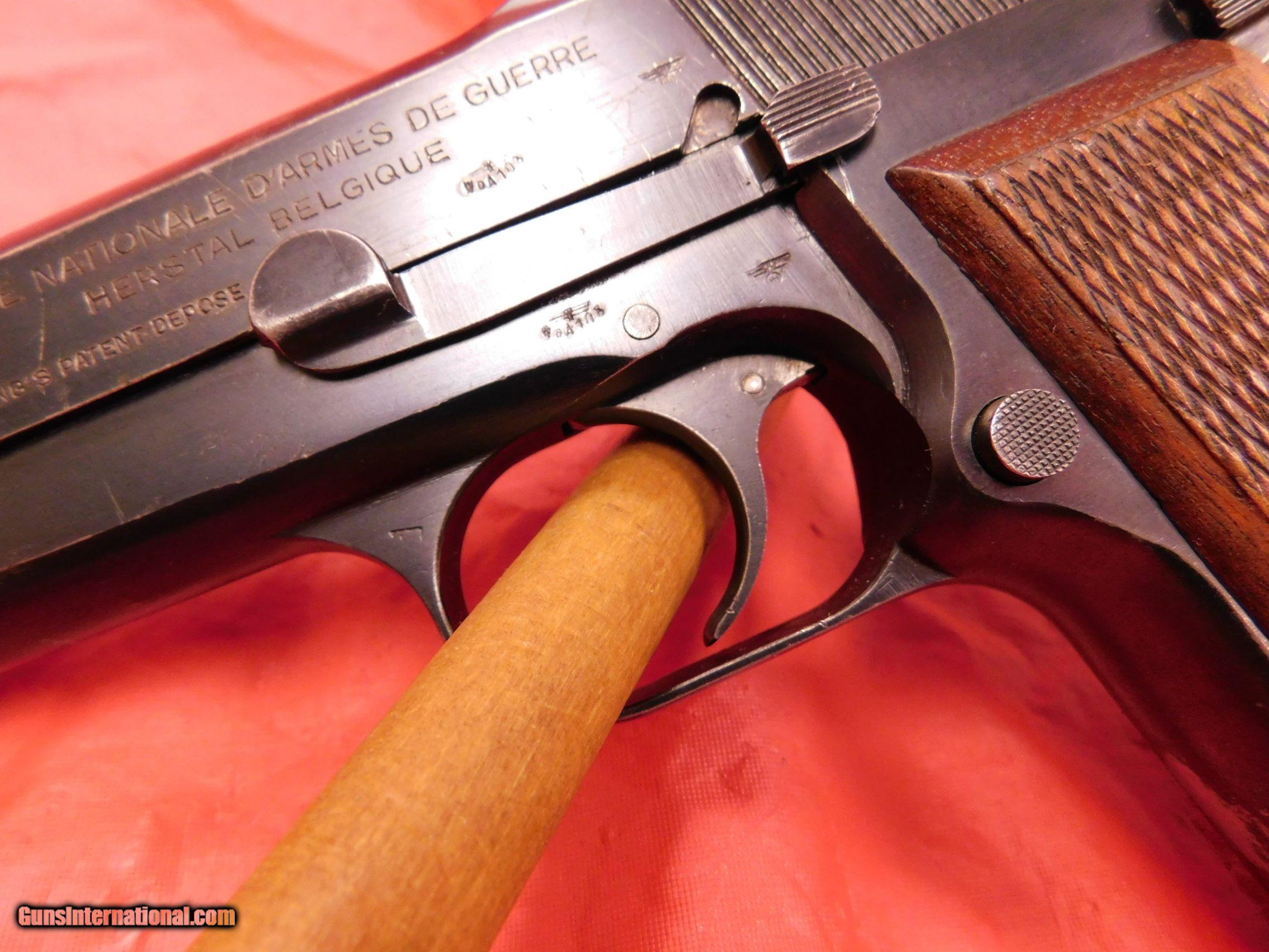 Description: FN Hi Power 9mm 4 3/4" bbl, WW2 Type 2, proofed WaA 103, serial #64881, made in Belgium, nice shape, has some finish wear on front strap and slide, grips in excellent shape, nice classic FN. Only $2000 $25 shipping and NO cc fees. Please ask for Pat 716-833-2581 or 716-835-1546. SOLD Manufacturer: FN Model: Hi Power Serial Number: 64881 Caliber Info: 9mm Condition: used Barrels: 4 3/4 |