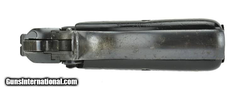 Description: FN High-Power 9mm caliber pistol. Early post war production with internal extractor and thumb print slide. Shows some holster wear, otherwise very good condition.