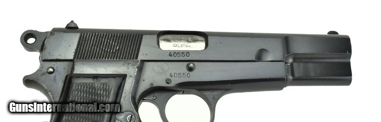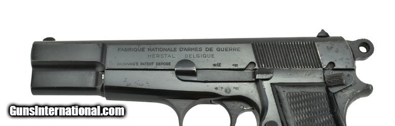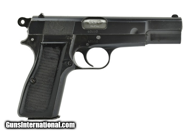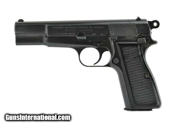 FN High-Power 9mm caliber pistol. Early post war production with internal extractor and thumb print slide. Shows some holster wear, otherwise very good condition.
