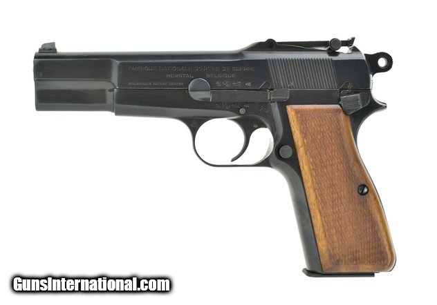 Description: FN High-Power 9mm caliber pistol. Pre-War model with Tangent sight and stock slot. Has 99% blue finish and excellent bore. A good looking example.