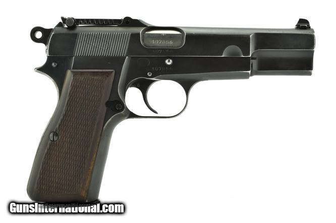 Description: FN High-Power 9mm caliber pistol. German WWII issued Hi-power with Tangent rear sight. Very good bore with strong rifling. Very good plus overall condition.