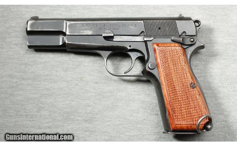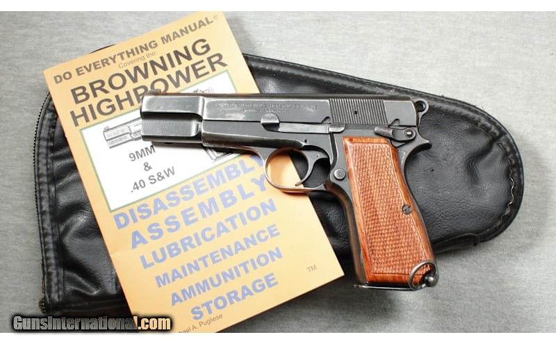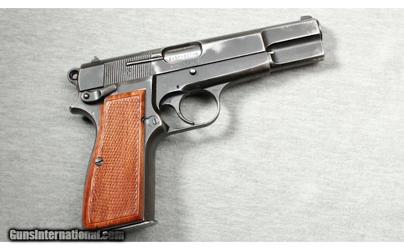 Description: Very good condition, some wear, small nicks and scratches. Comes with one mag, manual and soft case. FN high power 9mm semi auto pistol, 4 3/4" barrel, blued finish, fixed sights, single action trigger, serrated slide stop & safety lever, ring hammer, and checkered wood grips. 9mm Luger SOLD Chambers: Semi auto Metal Condition: Very good Bore Condition: Bright Barrels: 4 3/4 Triggers: Single action Butt Pad: Wood grips Sights: Fixed sights Item Location: La Vista, NE |