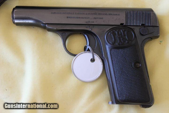 FN M1910 early 1930's mfg. 7.62mm (32 auto) 95% original condition