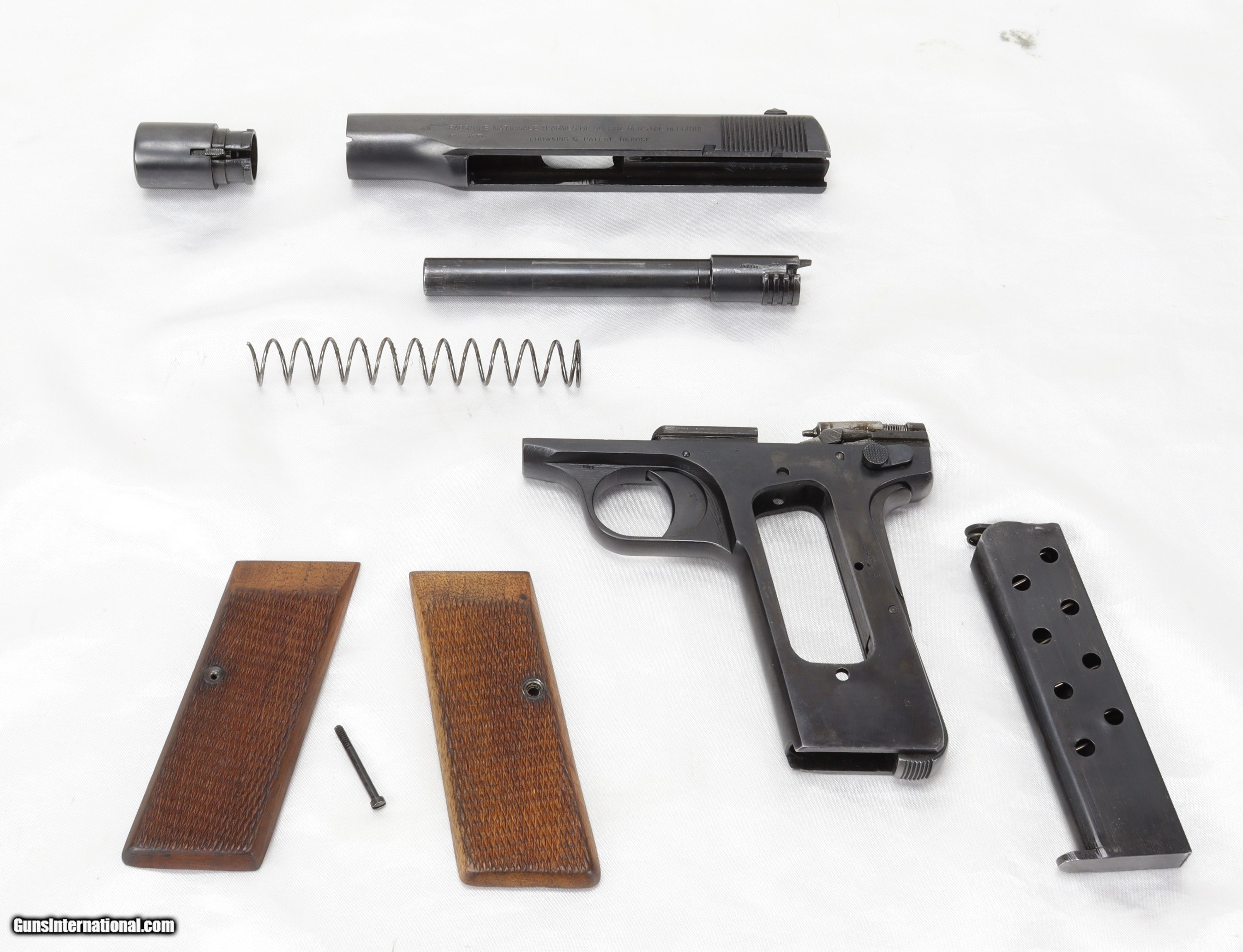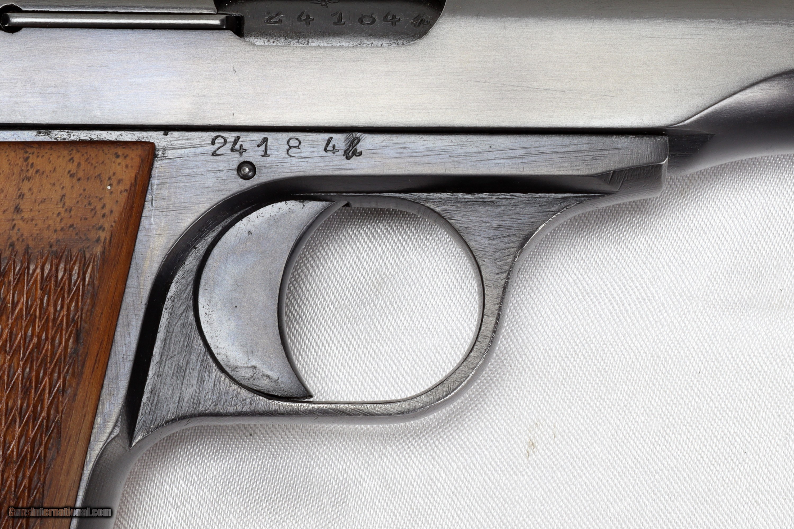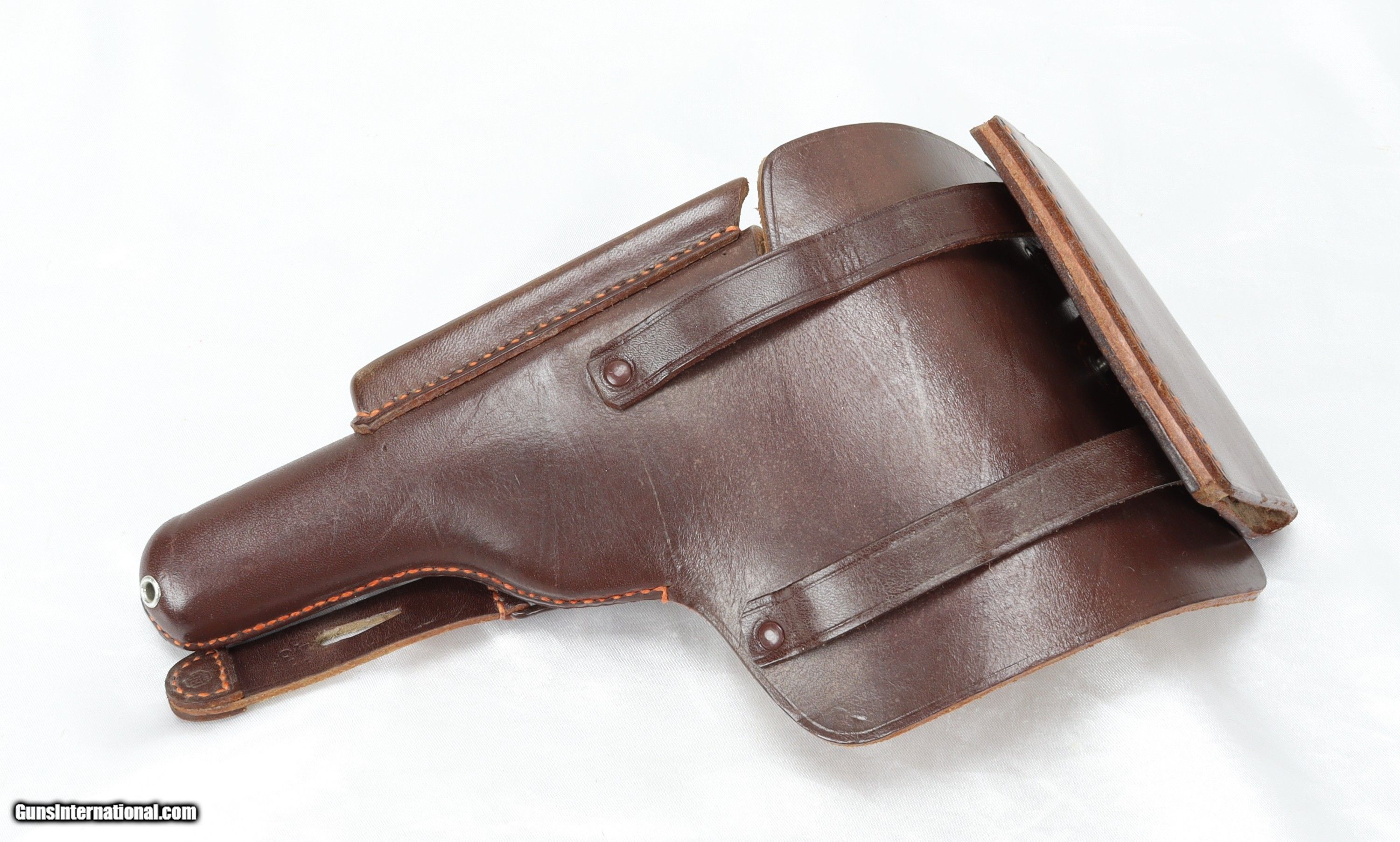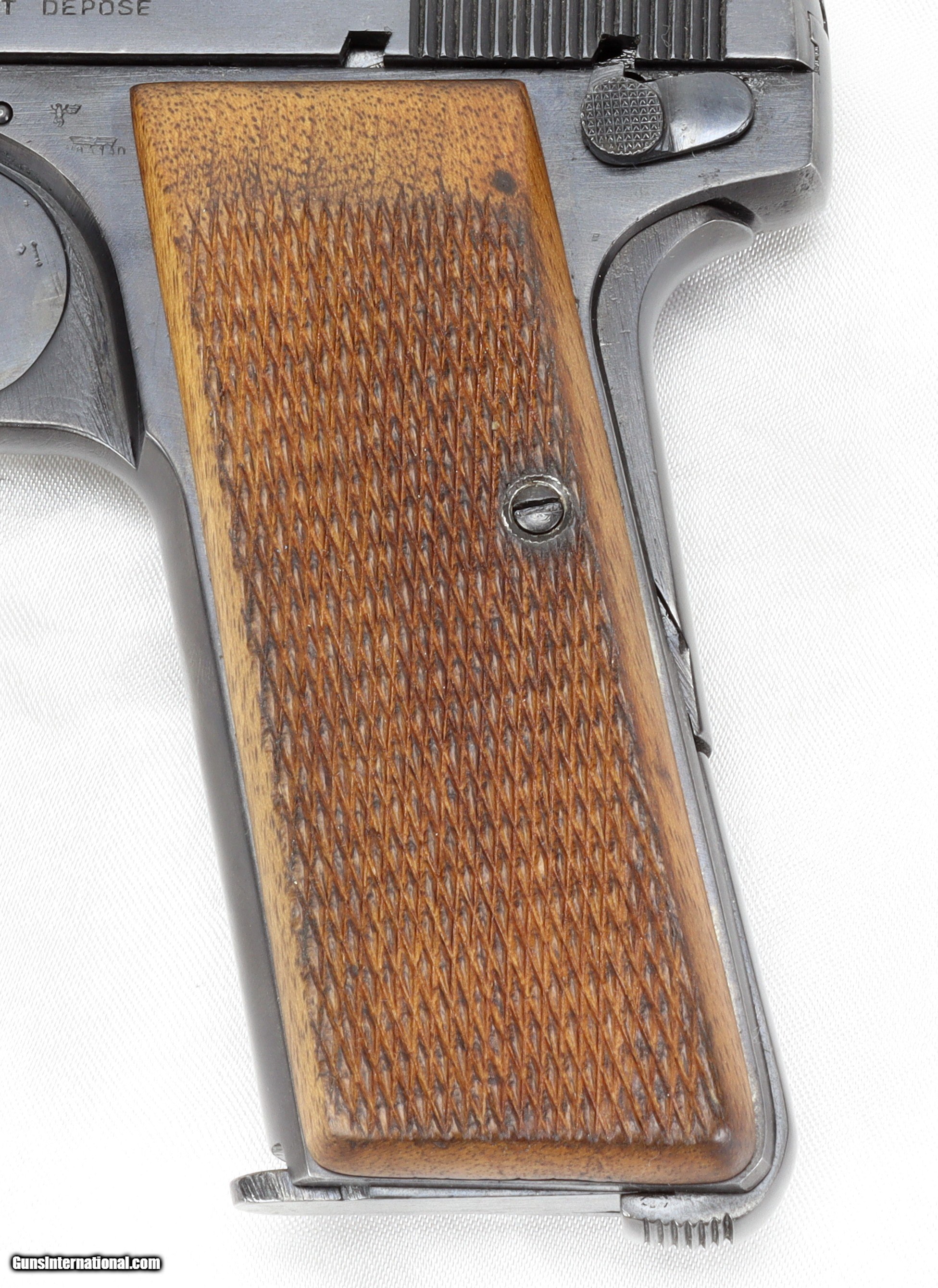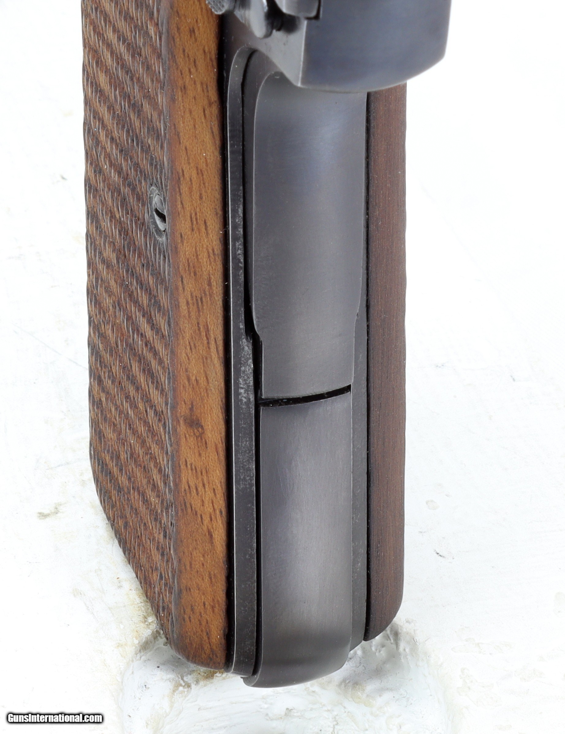 Description: FN Model 1922 Semi-Auto Pistol in .32ACP / 7.65. SN #24184b. Mfg. 1940-1944 Est. GERMAN WaA140 PROOFS AND NAZI MARKINGS.4 1/2" Barrel with an EXCELLENT Bright Bore with SHARP RIFLING. The Blued Metal finish is in VERY GOOD condition with some light handlings marks and wear. The Walnut Grips show some light wear but are in VERY GOOD condition for their age. 9 shot magazine capacity. Includes a nice leather Drop Holster with markings inside of " Nur fur lange Browning Pistole Kal. 7.65". Weight: 1.47 lbs. Trigger Pull: 5 lbs. 6 oz. More photos available upon request. Ships to Lower 48 W/ Insurance $35.00. SOLD Curio/Relic: Yes Handgun Caliber: .32 ACP (7.65x17mm Browning SR) Manufacturer: FN Model: 1922 Serial Number: 24184b Barrel Length: 4 1/2 Condition: VG for Age Metal Condition: VG for Age Wood Condition: VG for Age Bore Condition: Excellent Action: Semi Auto Finish: Blue Manufacture Date: 1940-44 |