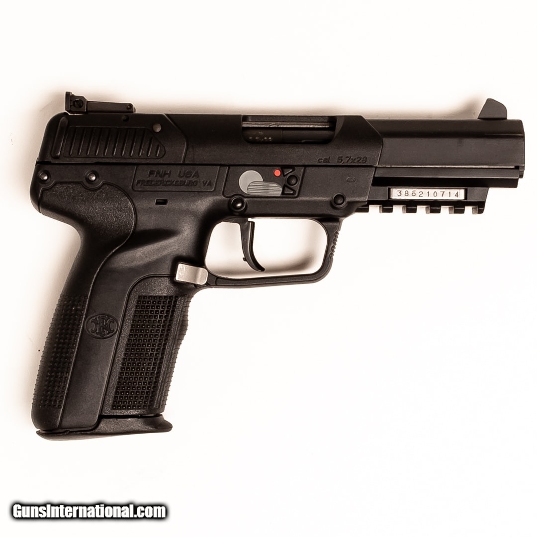 Description: Guns Listing ID: 598441 The FNH Five-seveN is a high-performance handgun that revolutionizes self-defense sidearms. Chambered in 5.7X28mm, this handgun boasts blistering velocity, tac driving accuracy, and surprisingly mild recoil. The sights are easy to pick up and the standard magazine capacity is 20 rounds, giving you the tactical edge in a dire situation. This handgun features two 20-round magazines. SOLD Manufacturer: FN Model: MODEL FIVE-SEVEN Caliber Info: 5.7X28MM Condition: Used - Certified Barrels: 4.8 BARREL Finish: BLACK |